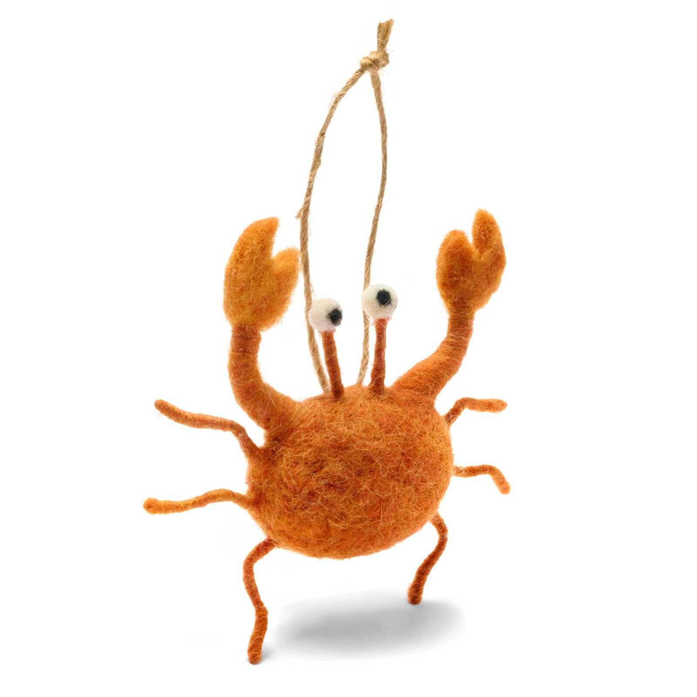 Ein filigraner, oranger Wollkrabbenanhänger mit großen, hervorstehenden Augen und einer Kordel zum Aufhängen., Diverse