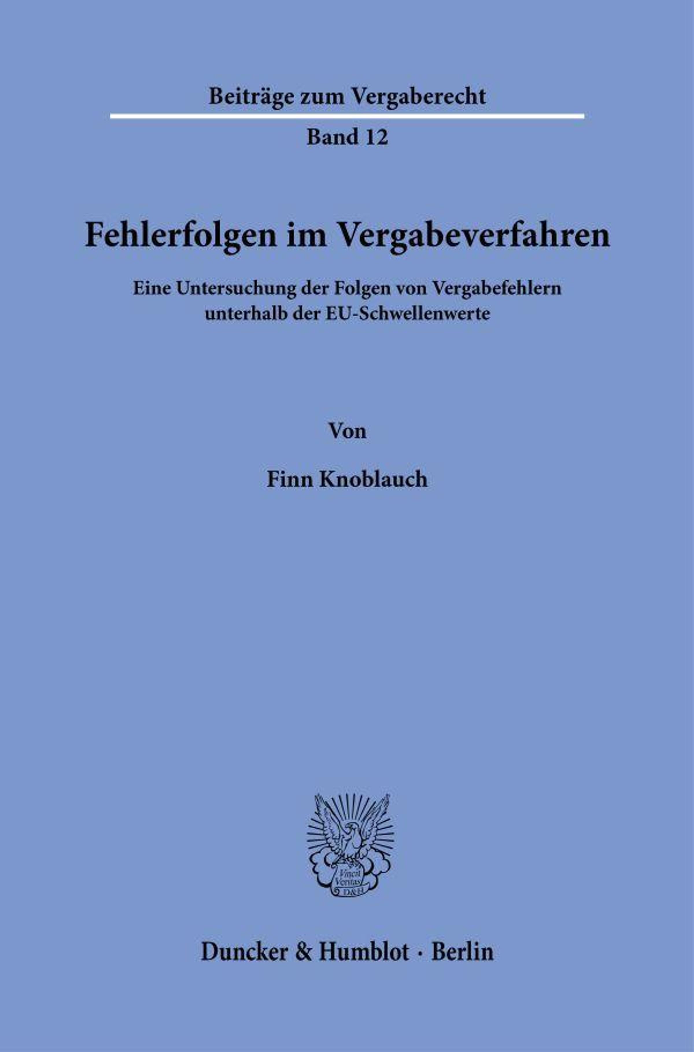 Beiträge zum Vergaberecht Band 12. Fehlerfolgen im Vergabeverfahren von Finn Knoblauch. Darunter kleines Emblem. Duncker & Humblot., Buch
