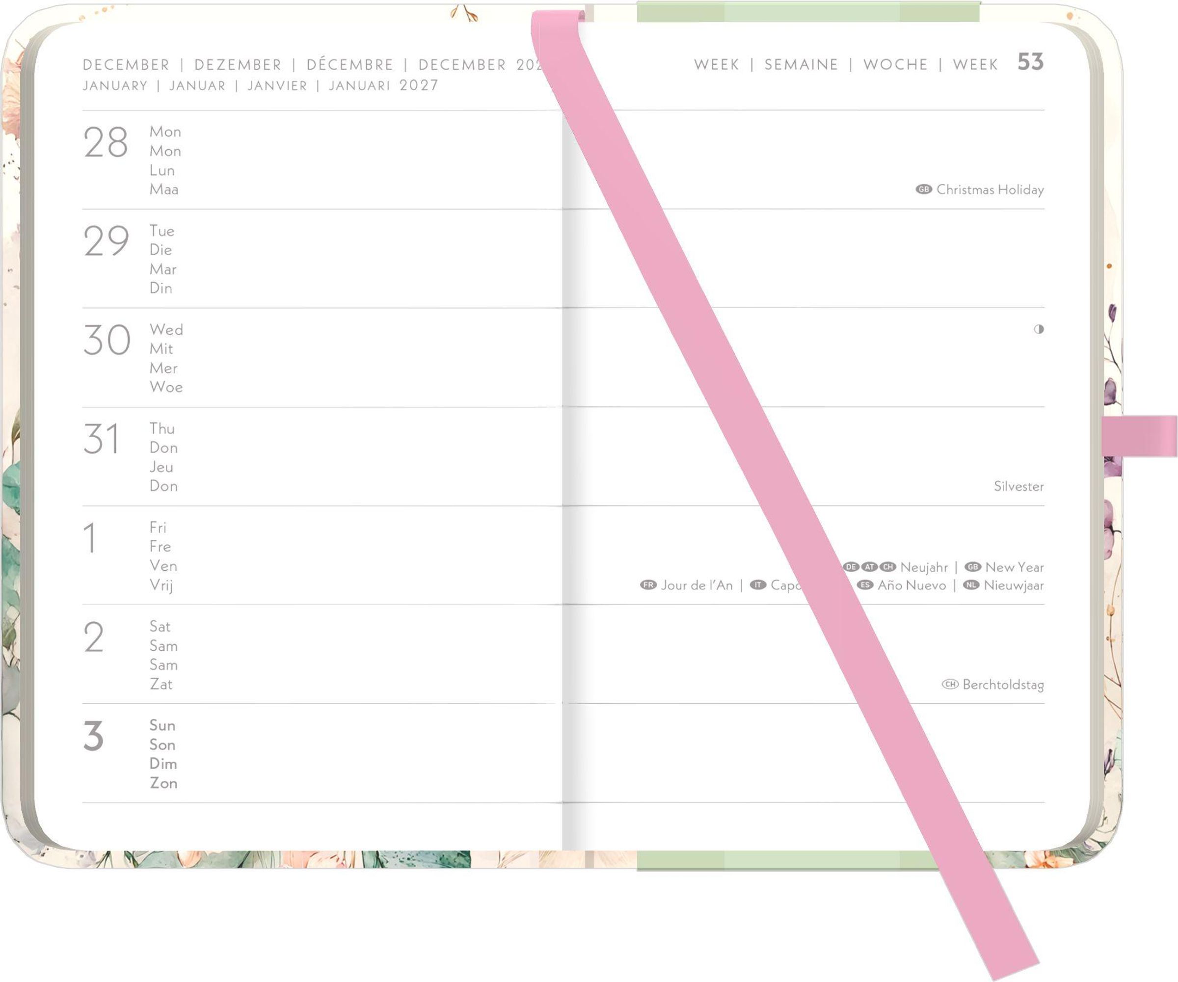 Der GreenLine Diary Floral 2027 ist ein liebevoll gestalteter Buchkalender im handlichen Taschenformat (10 x 15 cm) -- perfekt für unterwegs. Mit floralen Motiven, hochwertiger Ausstattung und nachhaltiger Produktion begleitet er Sie stilvoll durch das Jahr.