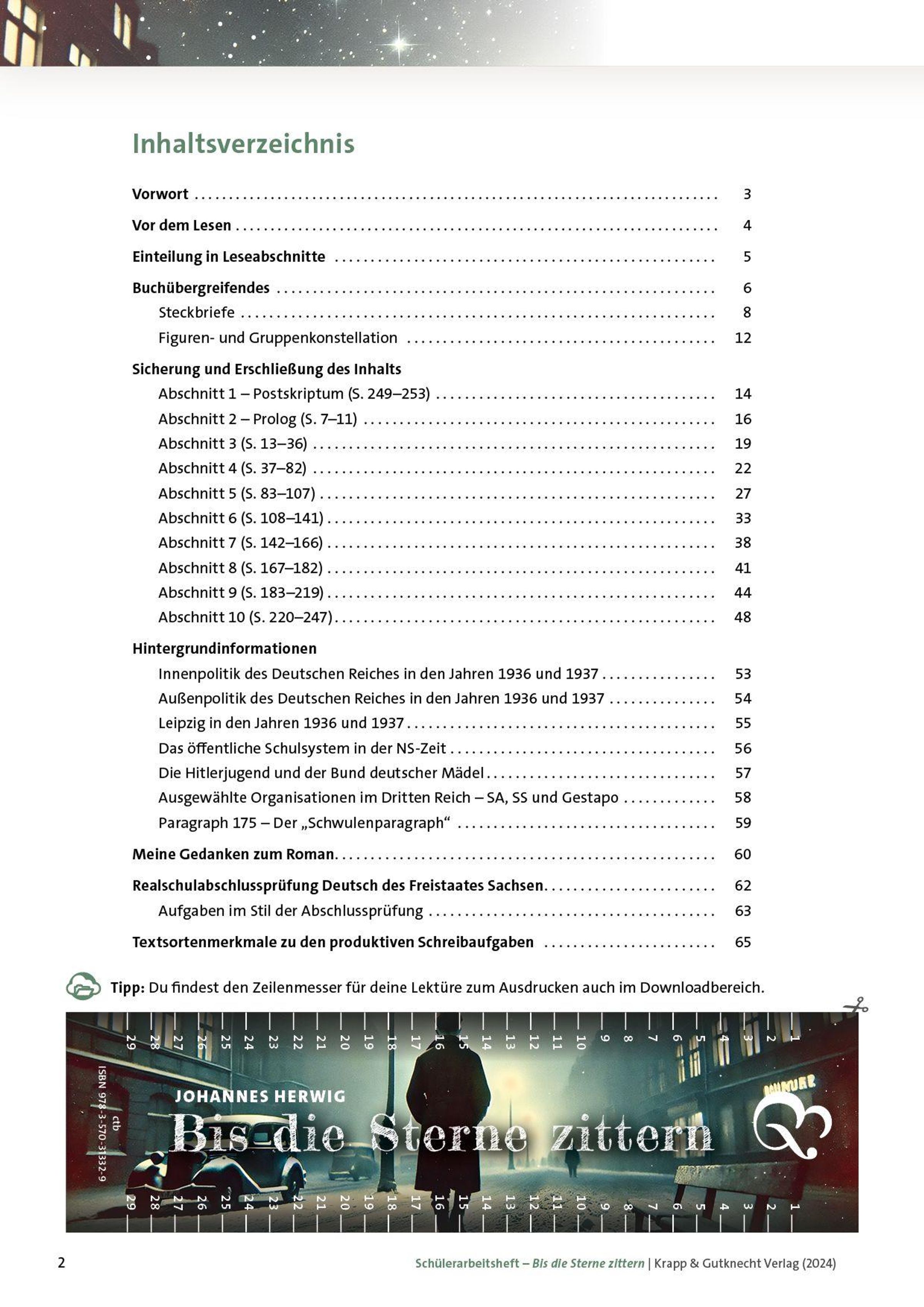 Bis die Sterne zittern - Johannes Herwig - Schülerarbeitsheft