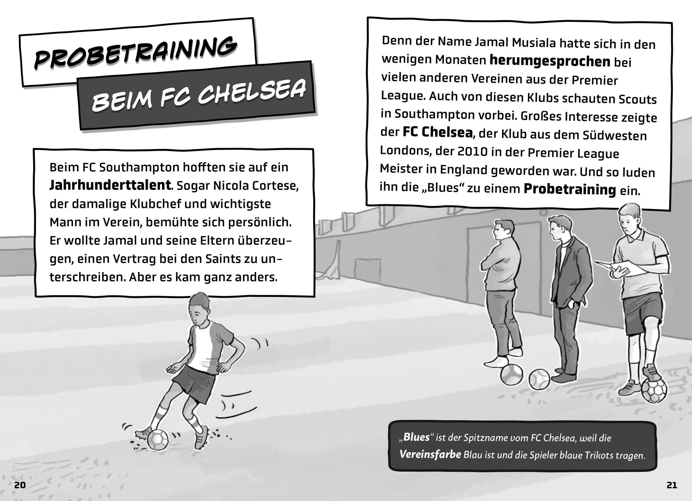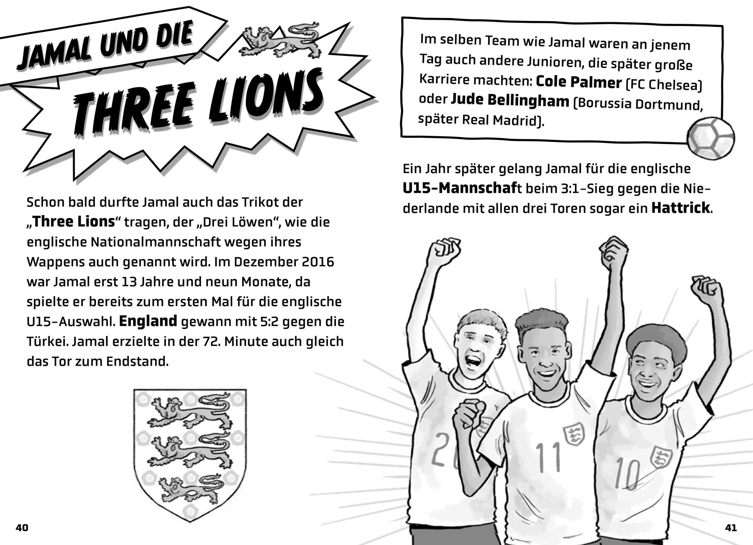 In dieser Buchreihe rund um große Fußballhelden können Jungen und Mädchen ab 8 Jahren alles über ihre Vorbilder erfahren! Wo lernte der junge Jamal Musiala das Fußballspielen ? Warum entschied er sich für die deutsche statt für die englische Nationalmannschaft ? Und was ist eigentlich sein Lieblingsessen? Mit lustigen Fakten und spannenden Infos , kurzen leichten Texte n, coolen Comics und bebilderten Anleitungen lernen junge Fußballfans alles über ihren Helden - und können sogar seine Tricks selbst nachmachen! Ein motivierendes Buch für allefußballbegeisterten Kinder und ein perfektes Geschenk für Erstleser.