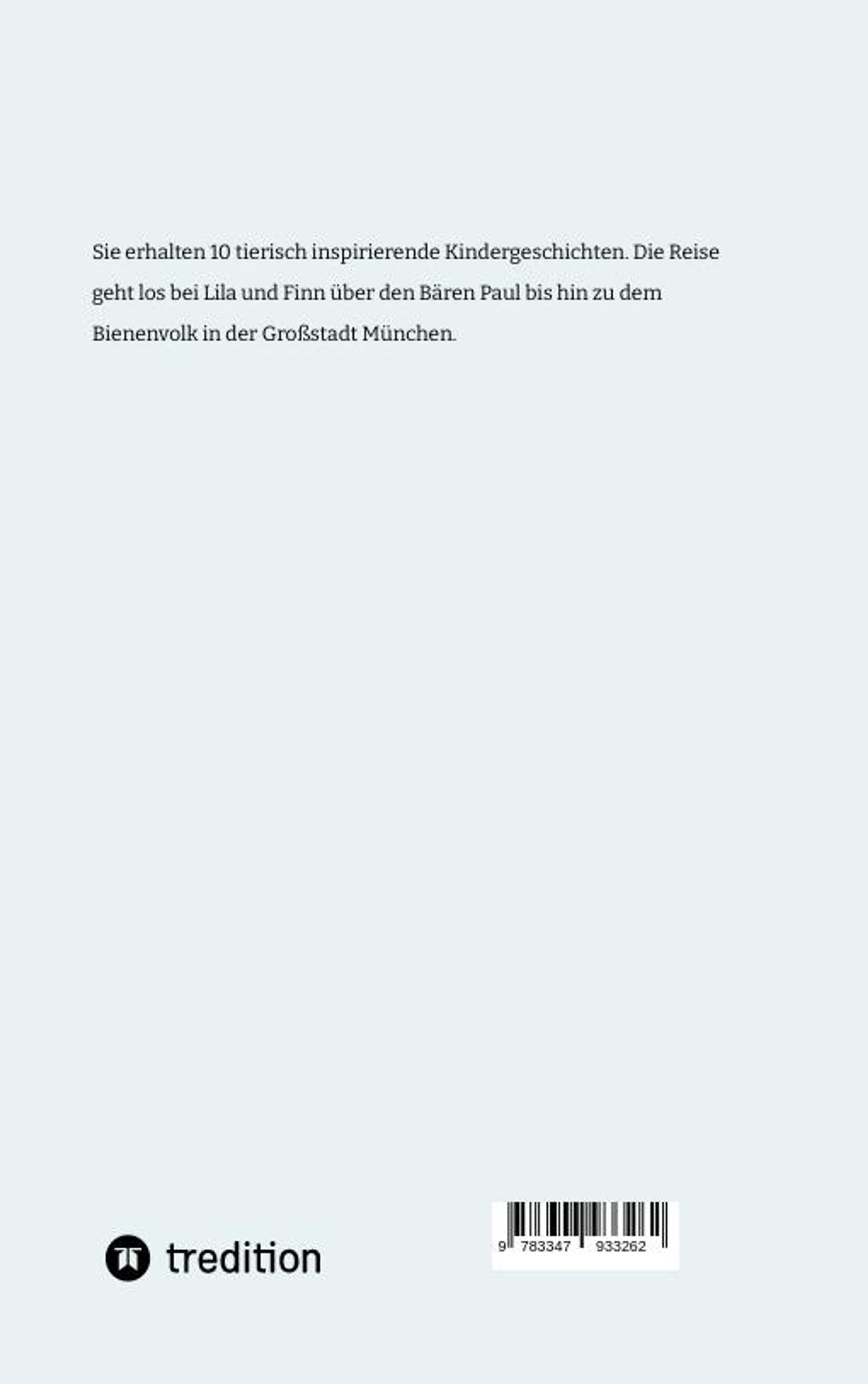 Sie erhalten 10 tierisch inspirierende Kindergeschichten. Die Reise geht los bei Lila und Finn über den Bären Paul bis hin zu dem Bienenvolk in der Großstadt München.