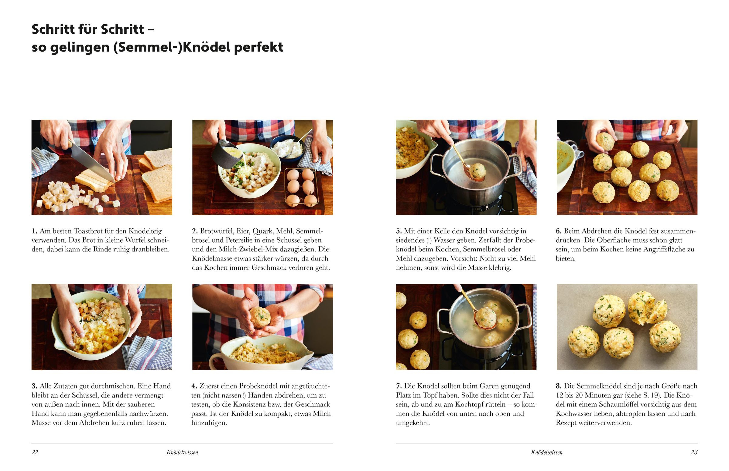 In einer ausführlichen Knödelkunde lernen Sie Schritt für Schritt, worauf es bei der Zubereitung ankommt. Mit den Grundrezepten zu Kartoffel-, Semmel-, Brezn- und Böhmischen Knödeln sind sowohl ungeübte als auch erfahrene Knödelköche bestens gerüstet, um sich dann an kreativen Variationen zu probieren. Dazu erfahren Sie alles über die passenden Zutaten, Saucen und Toppings - ein absolutes Muss für jeden Knödel-Liebhaber!