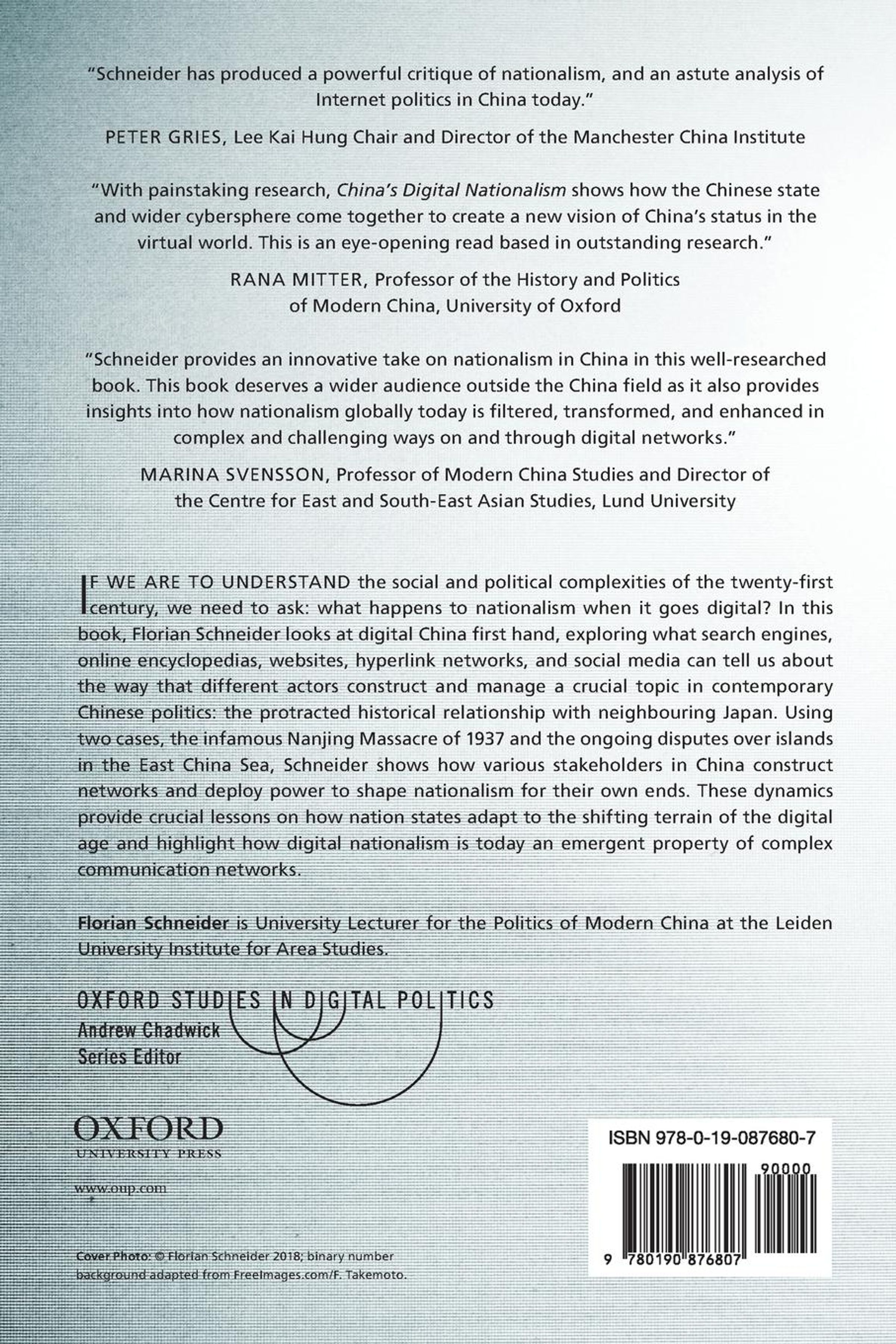Nationalism, in China as much as elsewhere, is today adopted, filtered, transformed, enhanced, and accelerated through digital networks. And as we have increasingly seen, nationalism in digital spheres interacts in complicated ways with nationalism "on the ground." If we are to understand the social and political complexities of the twenty-first century, we need to ask: what happens to nationalism when it goes digital? In China's Digital Nationalism, Florian Schneider explores the issue by looking at digital China first hand, exploring what search engines, online encyclopedias, websites, hyperlink networks, and social media can tell us about the way that different actors construct and manage a crucial topic in contemporary Chinese politics: the protracted historical relationship with neighbouring Japan. Using two cases, the infamous Nanjing Massacre of 1937 and the ongoing disputes over islands in the East China Sea, Schneider shows how various stakeholders in China construct networks and deploy power to shape nationalism for their own ends. These dynamics provide crucial lessons on how nation states adapt to the shifting terrain of the digital age and highlight how digital nationalism is today an emergent property of complex communication networks.