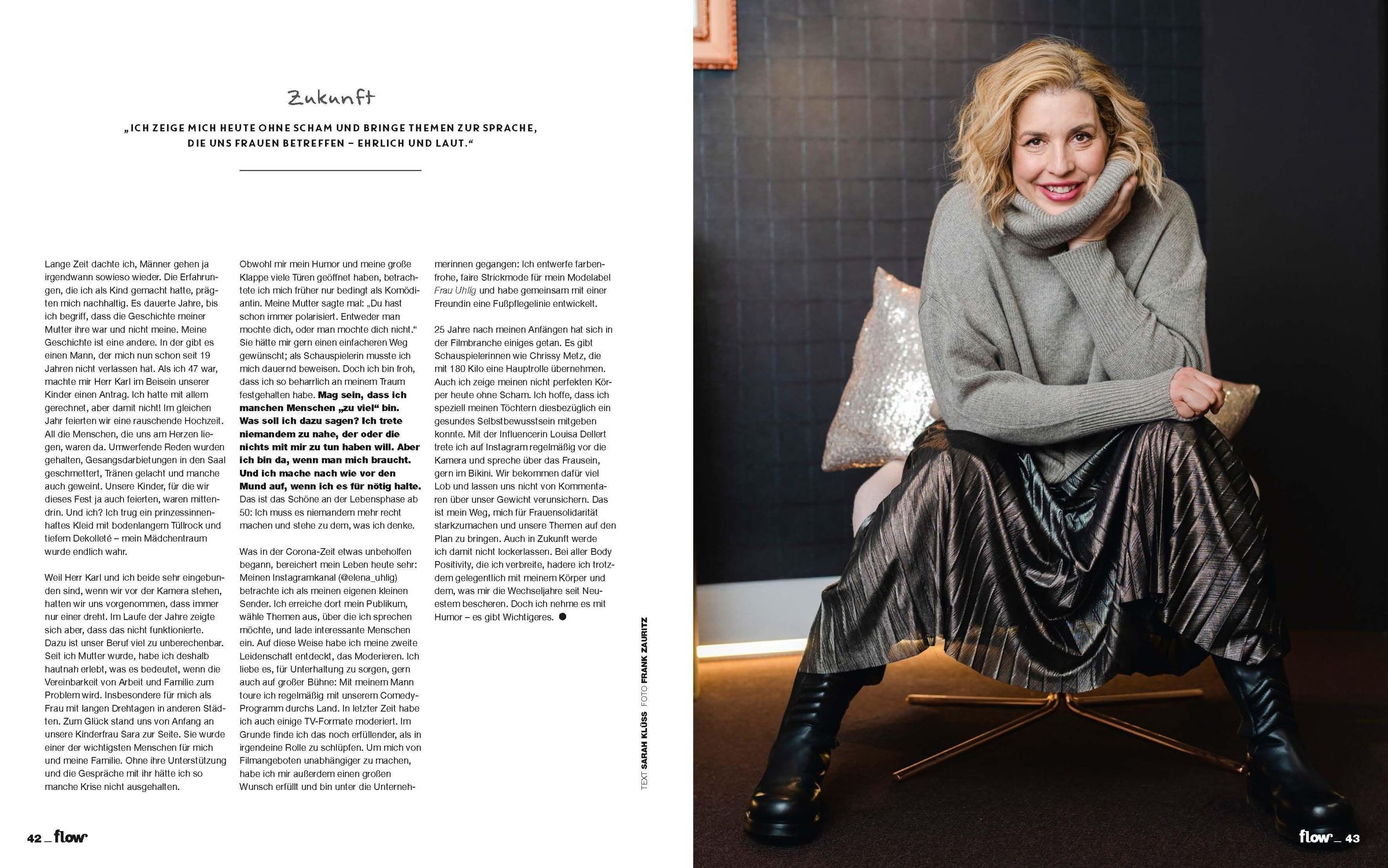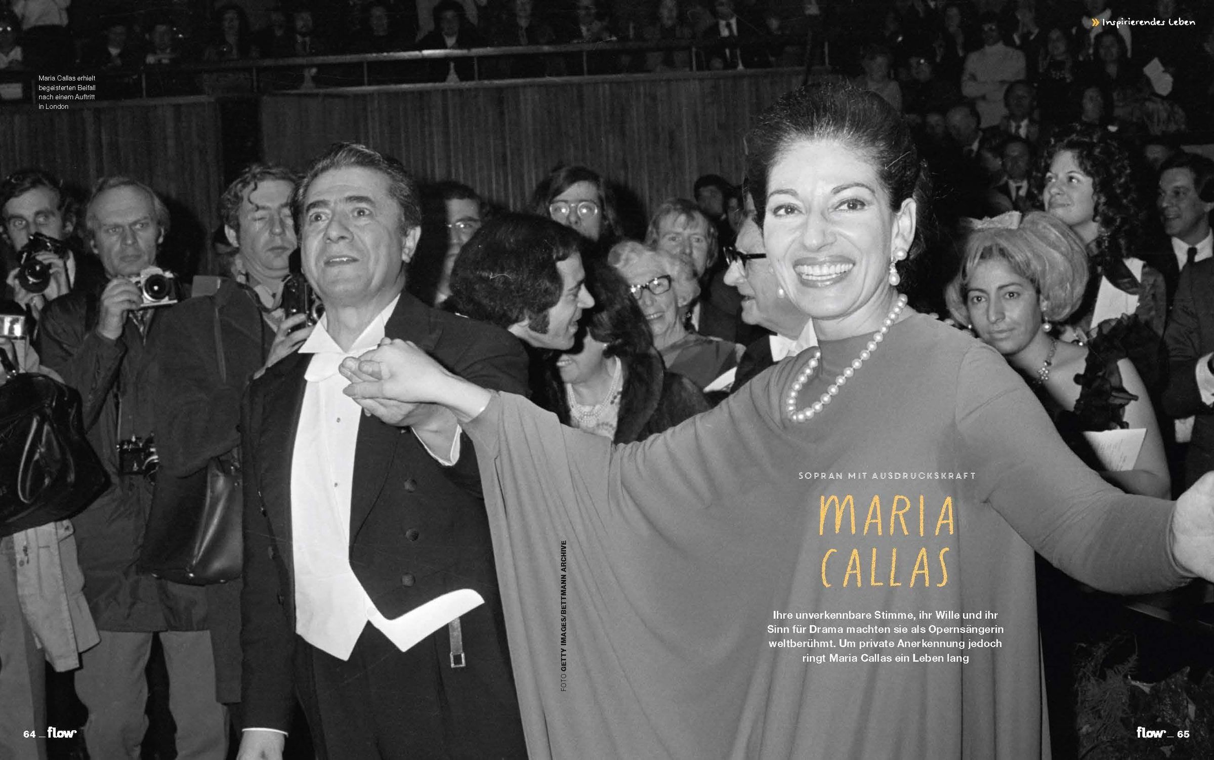"flow" in Weiß, bunter Hintergrund. Oben: "DAS MAGAZIN FÜR PERSÖNLICHE ENTWICKLUNG, KREATIVITÄT & MEHR RUHE". Texte über Energie und Zuhören., Zeitschrift