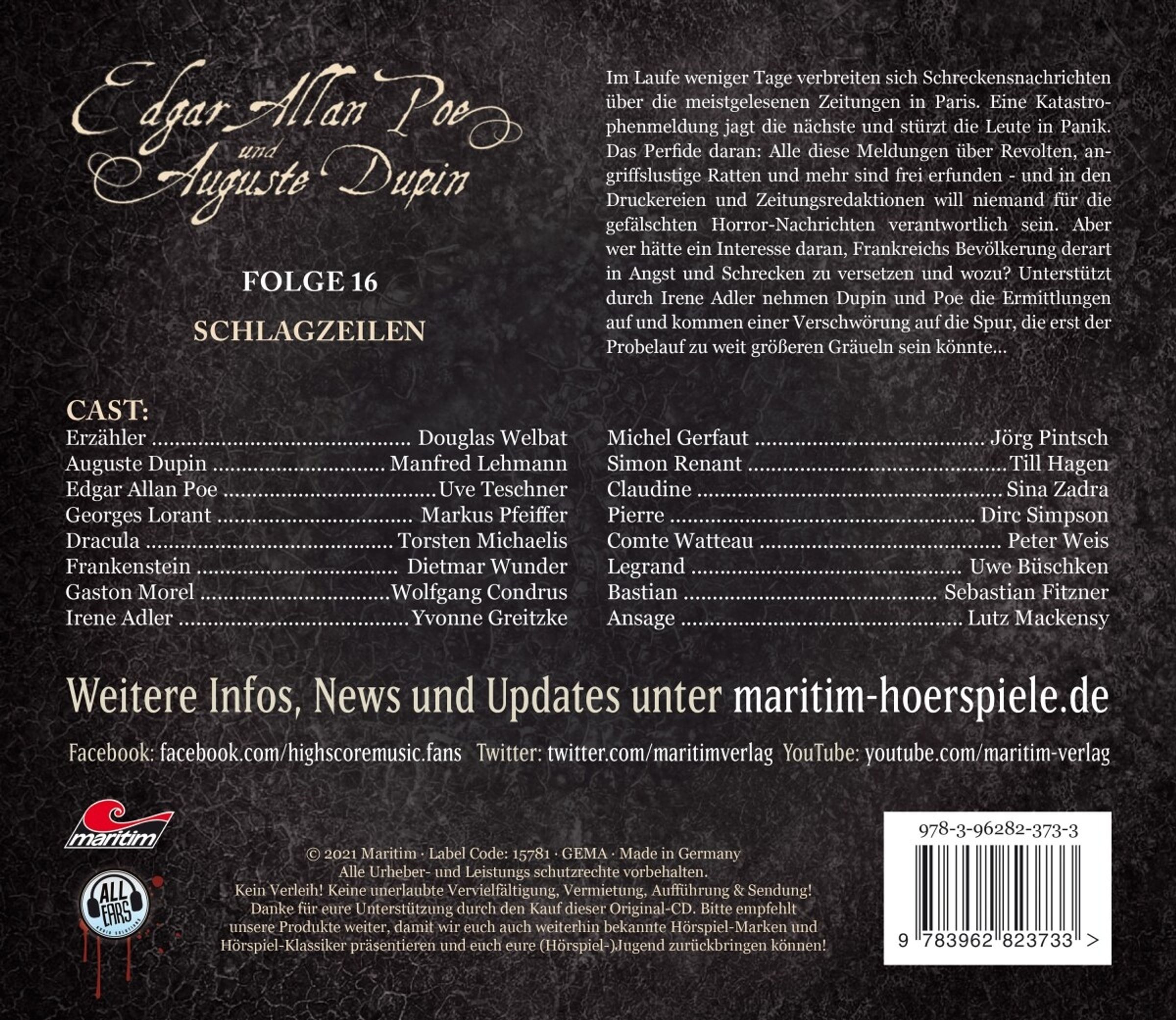 Edgar Allan Poe & Auguste Dupin (16) Schlagzeilen, CD, CD