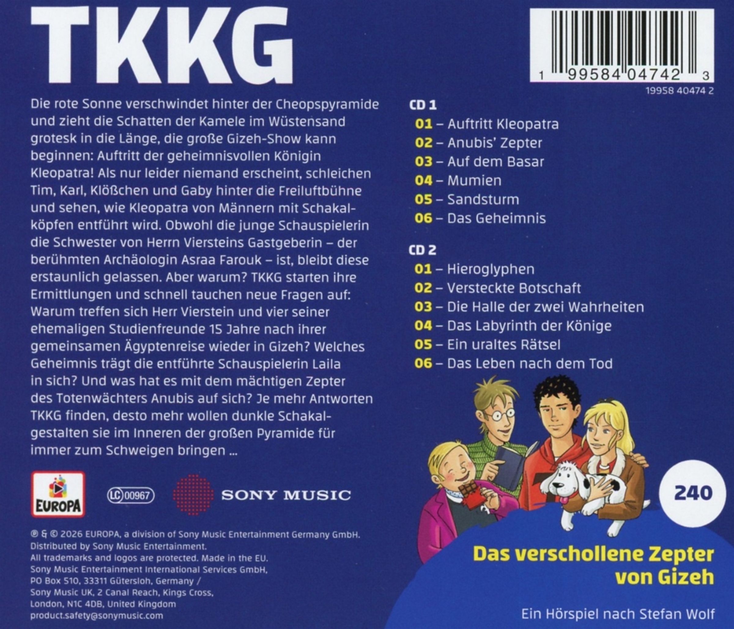Aber warum? TKKG starten ihre Ermittlungen und schnell tauchen neue Fragen auf: Warum treffen sich Herr Vierstein und vier seiner ehemaligen Studienfreunde 15 Jahre nach ihrer gemeinsamen Ägyptenreise wieder in Gizeh? Welches Geheimnis trägt die entführte Schauspielerin Laila in sich? Und was hat es mit dem mächtigen Zepter des Totenwächters Anubis auf sich? Je mehr Antworten TKKG finden, desto mehr wollen dunkle Schakalgestalten sie im Inneren der großen Pyramide für immer zum Schweigen bringen ...