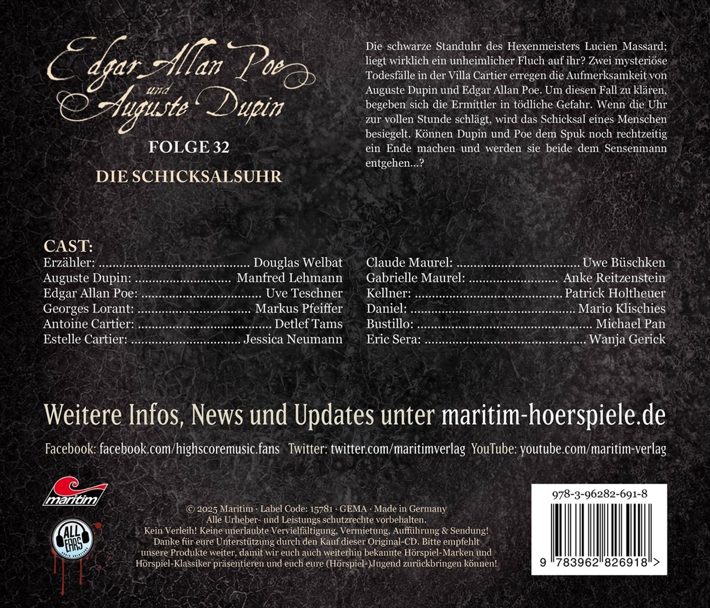 Edgar Allan Poe & Auguste Dupin (32) Die Schicksalsuhr (CD)