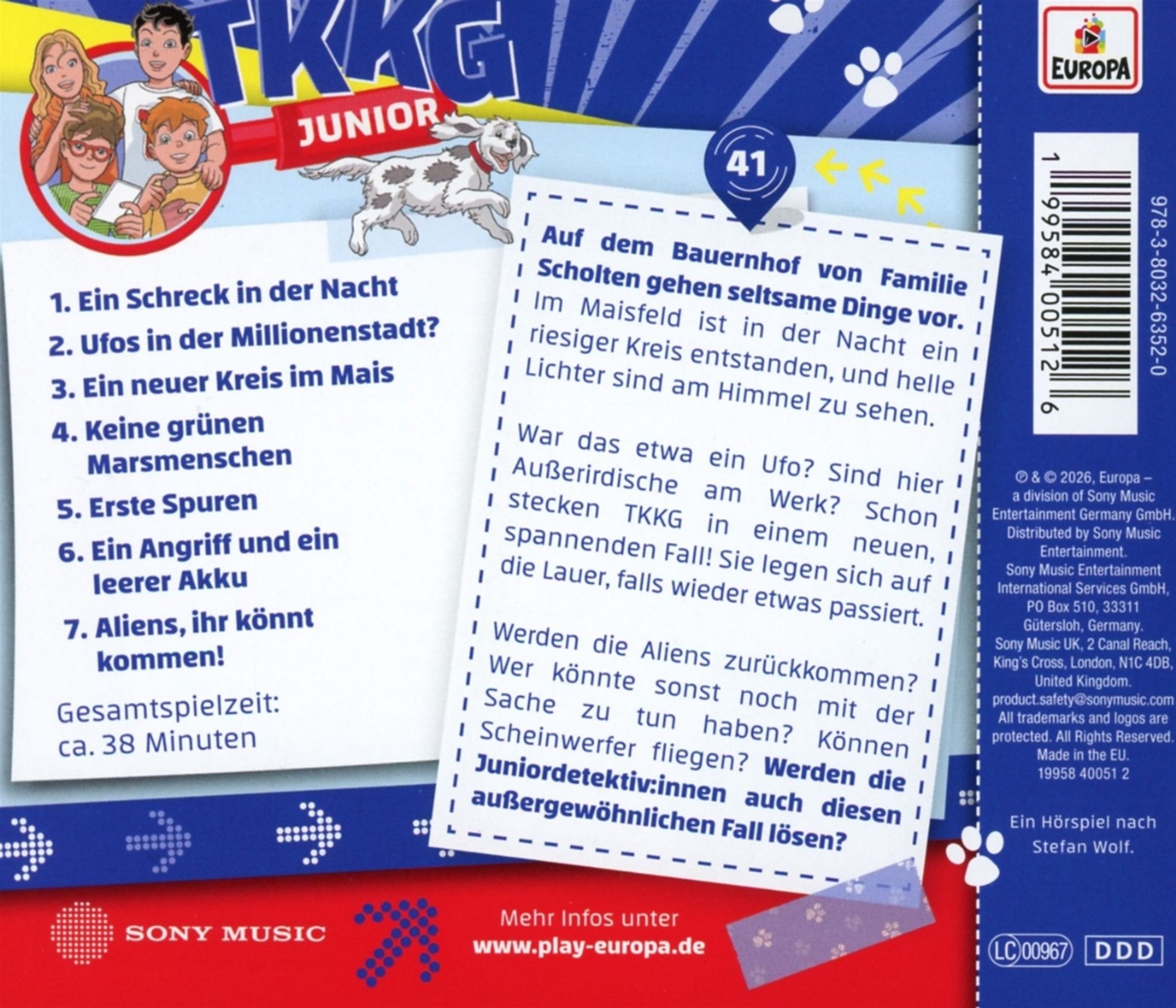 Auf dem Bauernhof von Familie Scholten gehen seltsame Dinge vor. Im Maisfeld ist in der Nacht ein riesiger Kreis entstanden und helle Lichter sind am Himmel zu sehen. War das etwa ein Ufo? Sind hier Außerirdische am Werk? Schon stecken TKKG in einem neuen, spannenden Fall! Sie legen sich auf die Lauer, falls wieder etwas passiert. Werden die Aliens zurückkommen? Wer könnte sonst noch mit der Sache zu tun haben? Können Scheinwerfer fliegen? Werden die Juniordetektive auch diesen außergewöhnlichen Fall lösen?