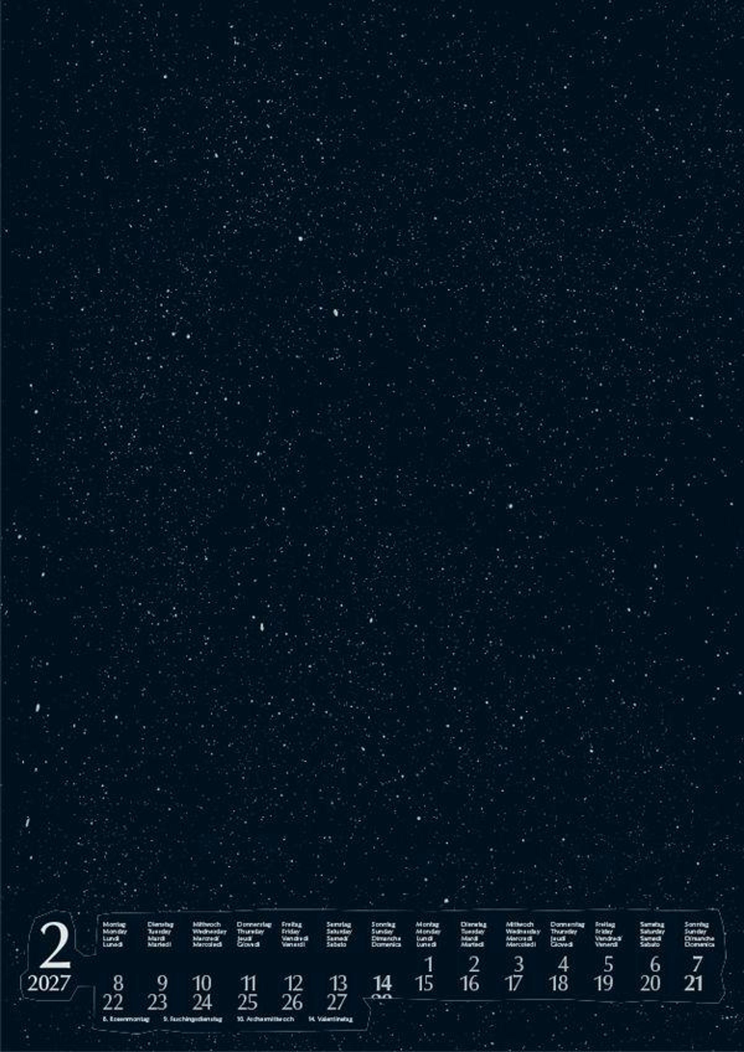 Hochwertiger Kalender mit silbernem Deckblatt, ausgestanztem Fenster und schwarzem Karton