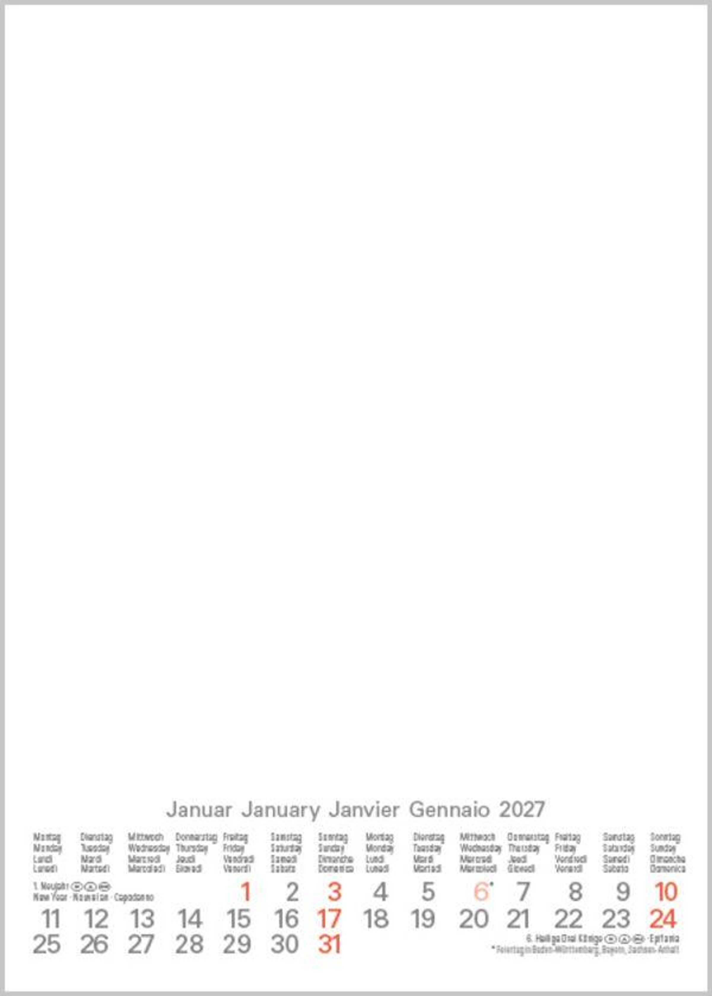 Mehrsprachiges Kalendarium mit Feiertagen für Deutschland, Österreich und Schweiz