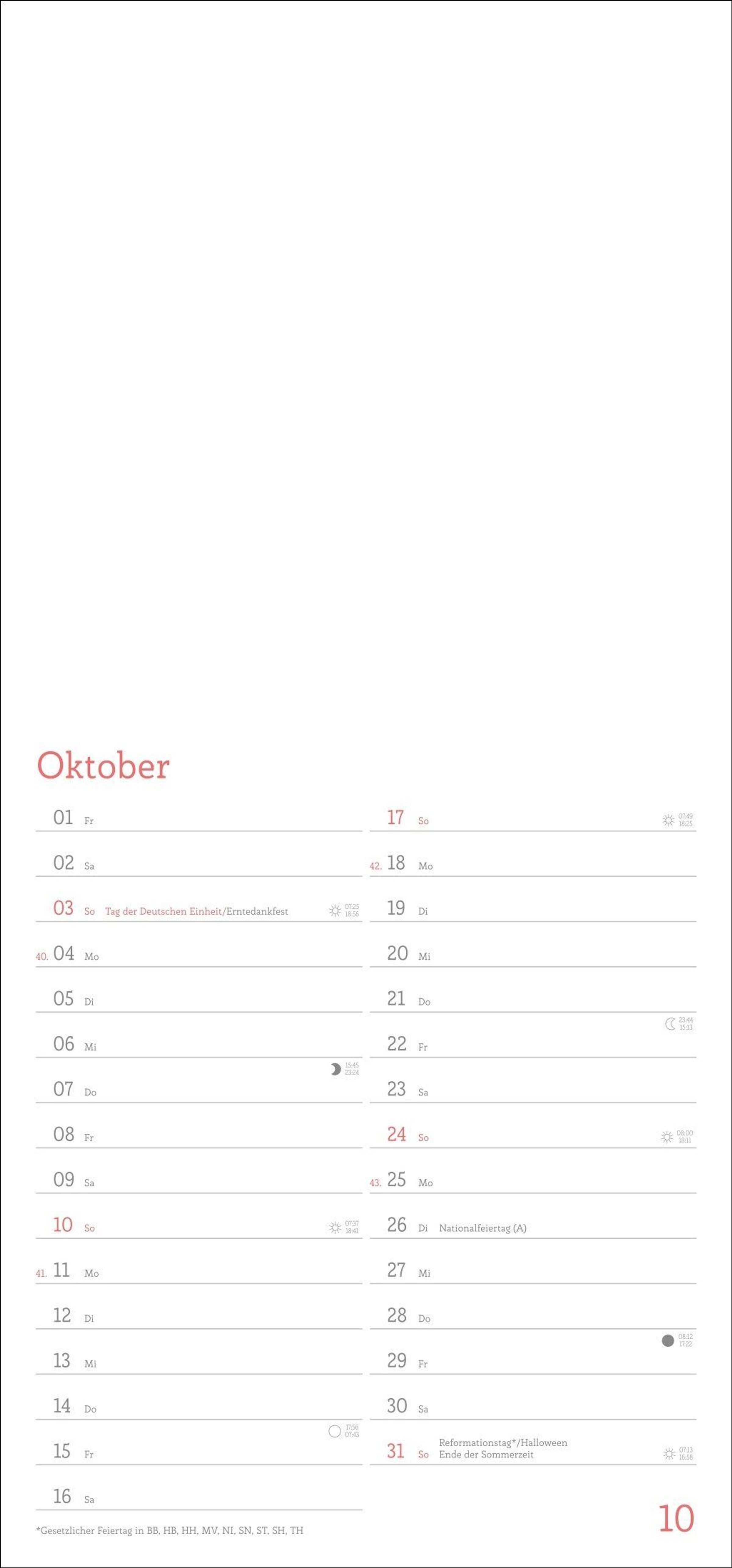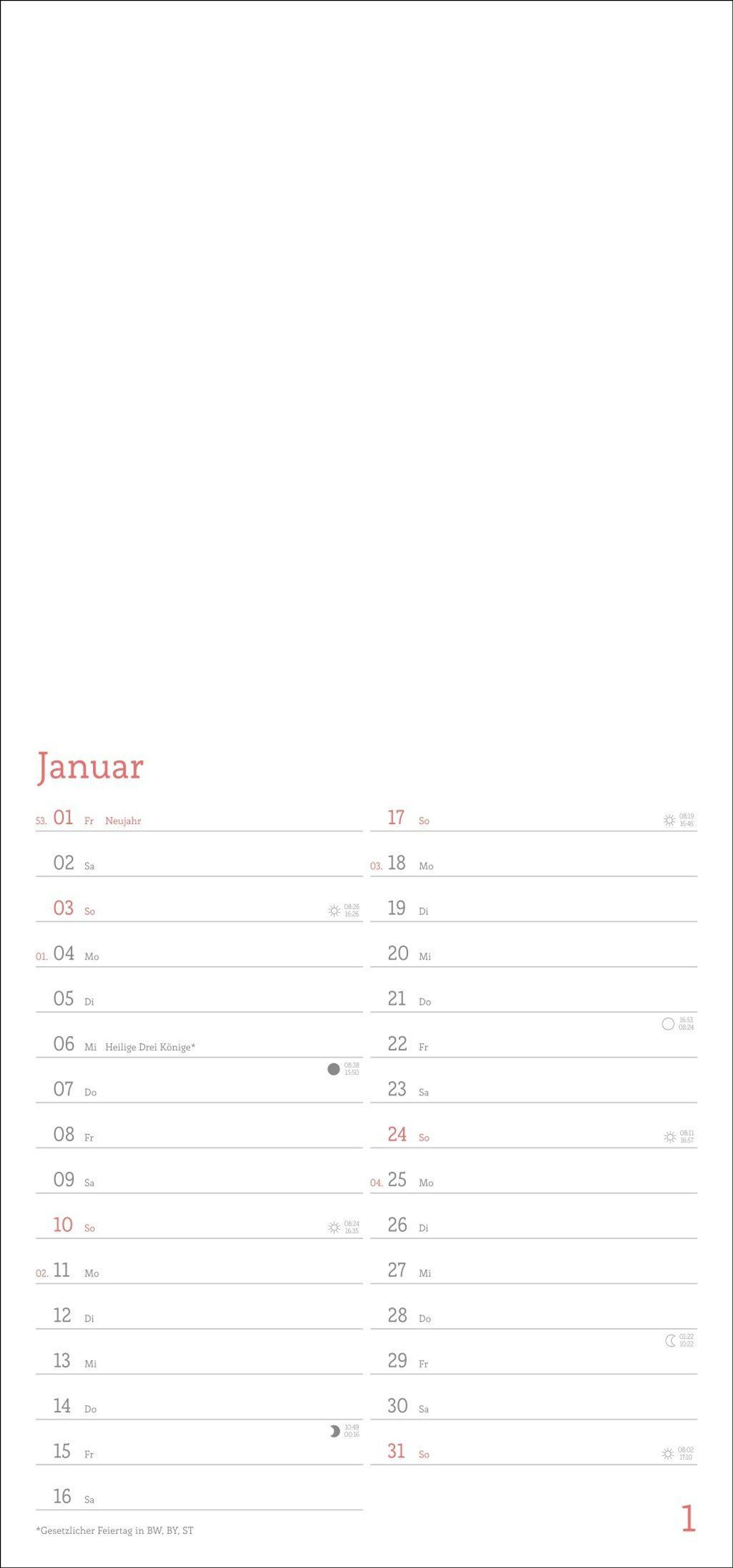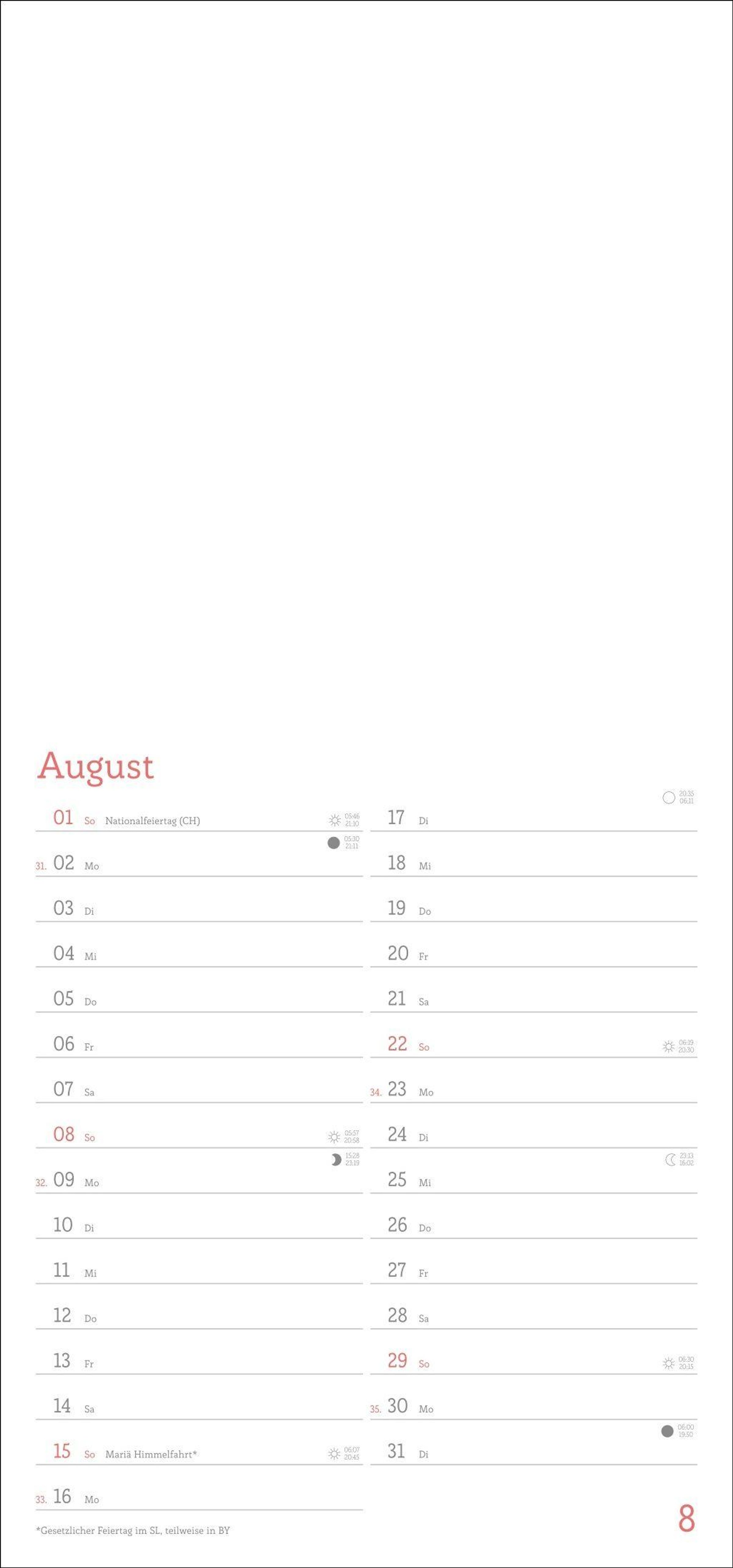 - Blanko-Kalender mit Monatskalendarium, Titelblatt zum Selbstgestalten, viel Platz für Notizen und mit Schulferien.