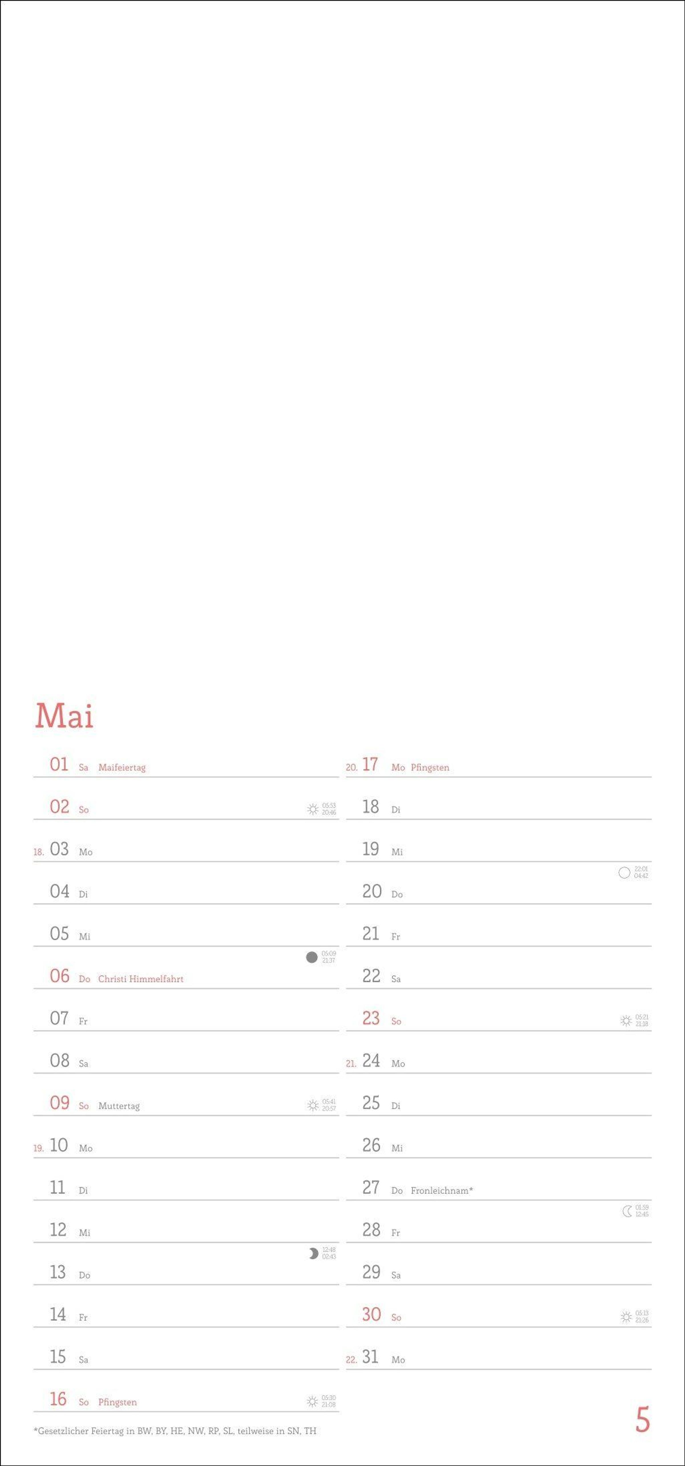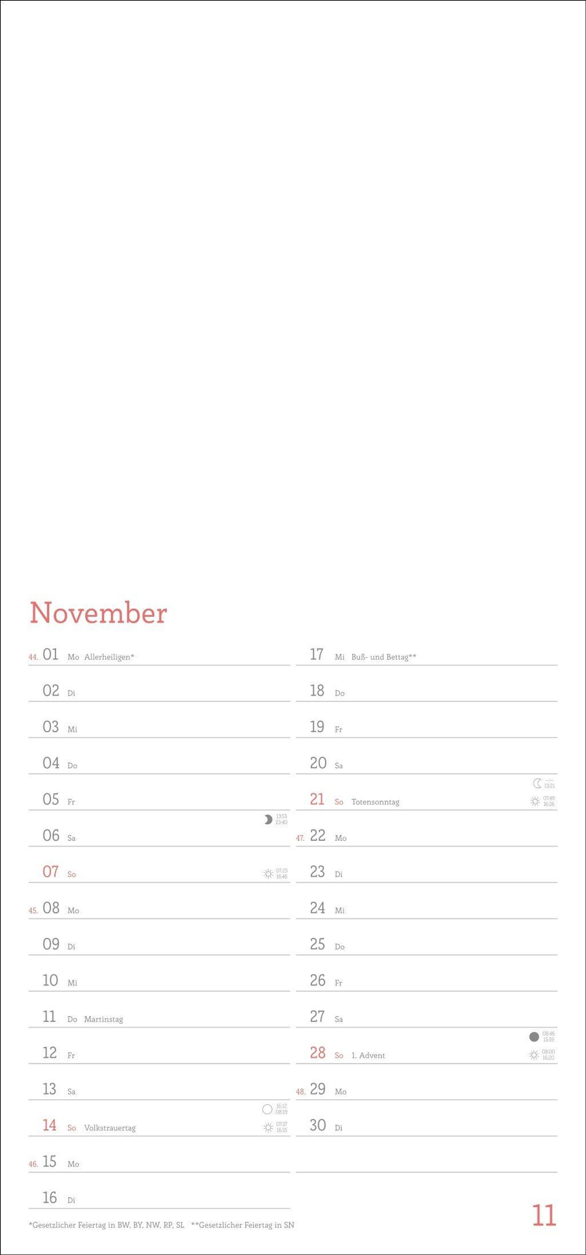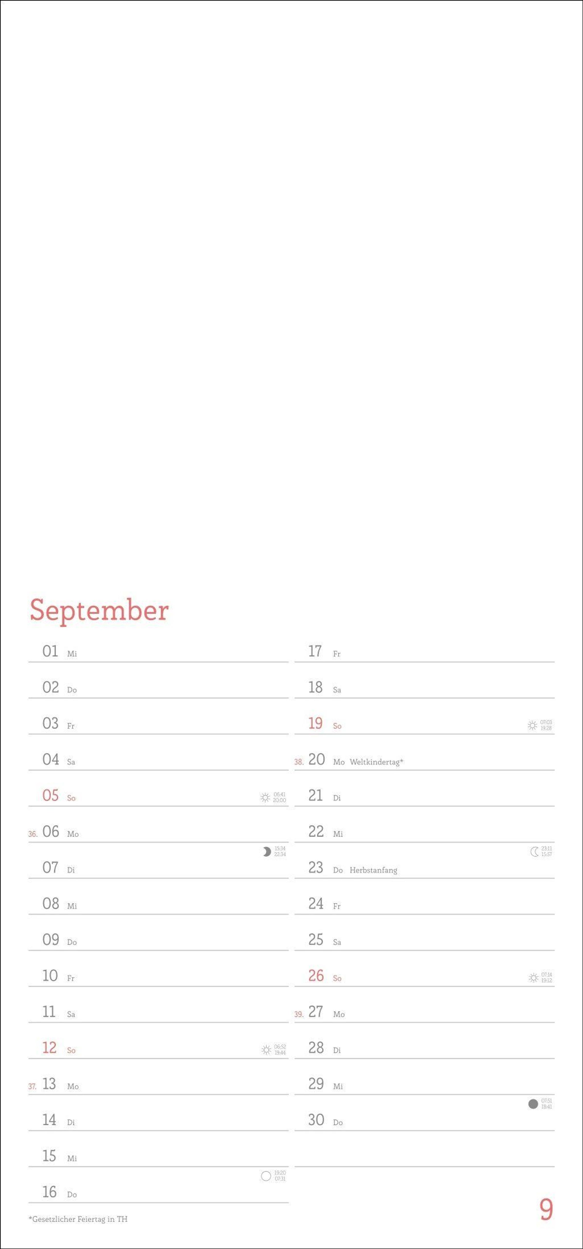 - Blanko-Kalender mit Monatskalendarium, Titelblatt zum Selbstgestalten, viel Platz für Notizen und mit Schulferien.
