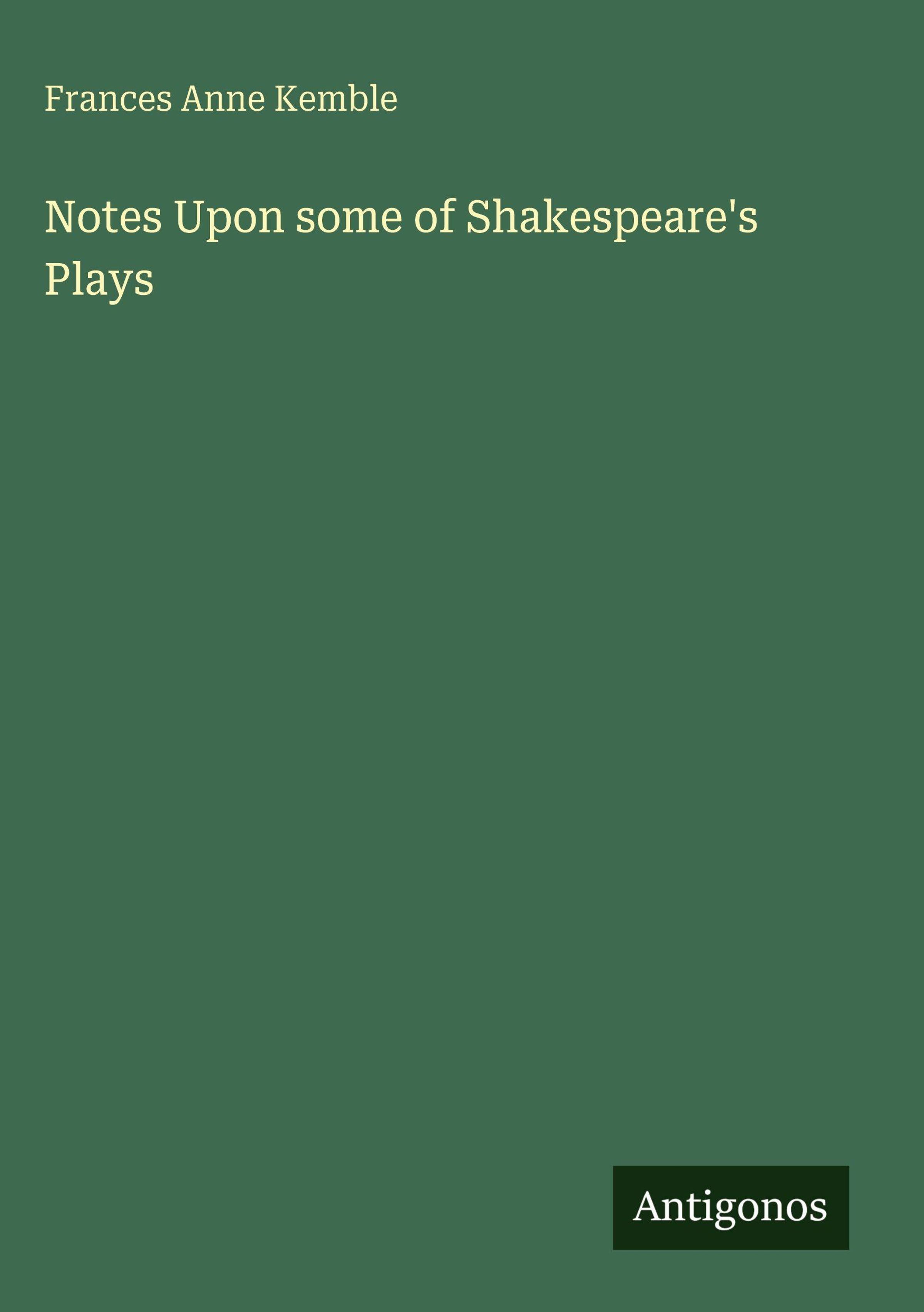 Frances Anne Kemble: Notes Upon some of Shakespeare's Plays, Gebunden