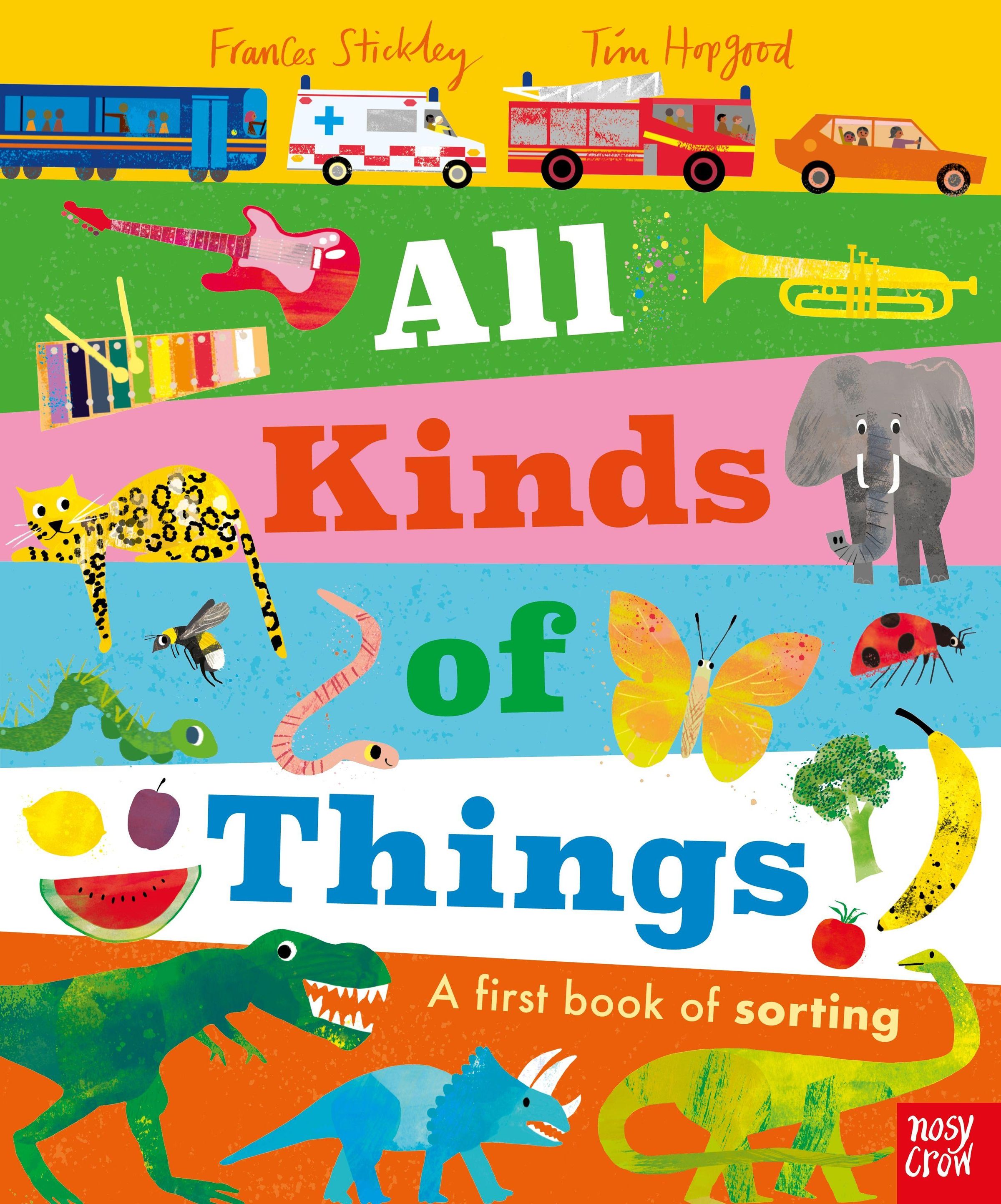Using categories and first words, this incredibly beautiful book showcases the wonders of the world and introduces the idea of how connected we all are. Each spread showcases a different group of "things", including sea creatures, furniture, dinosaurs, toys, food and drink, farm animals, birds and more!