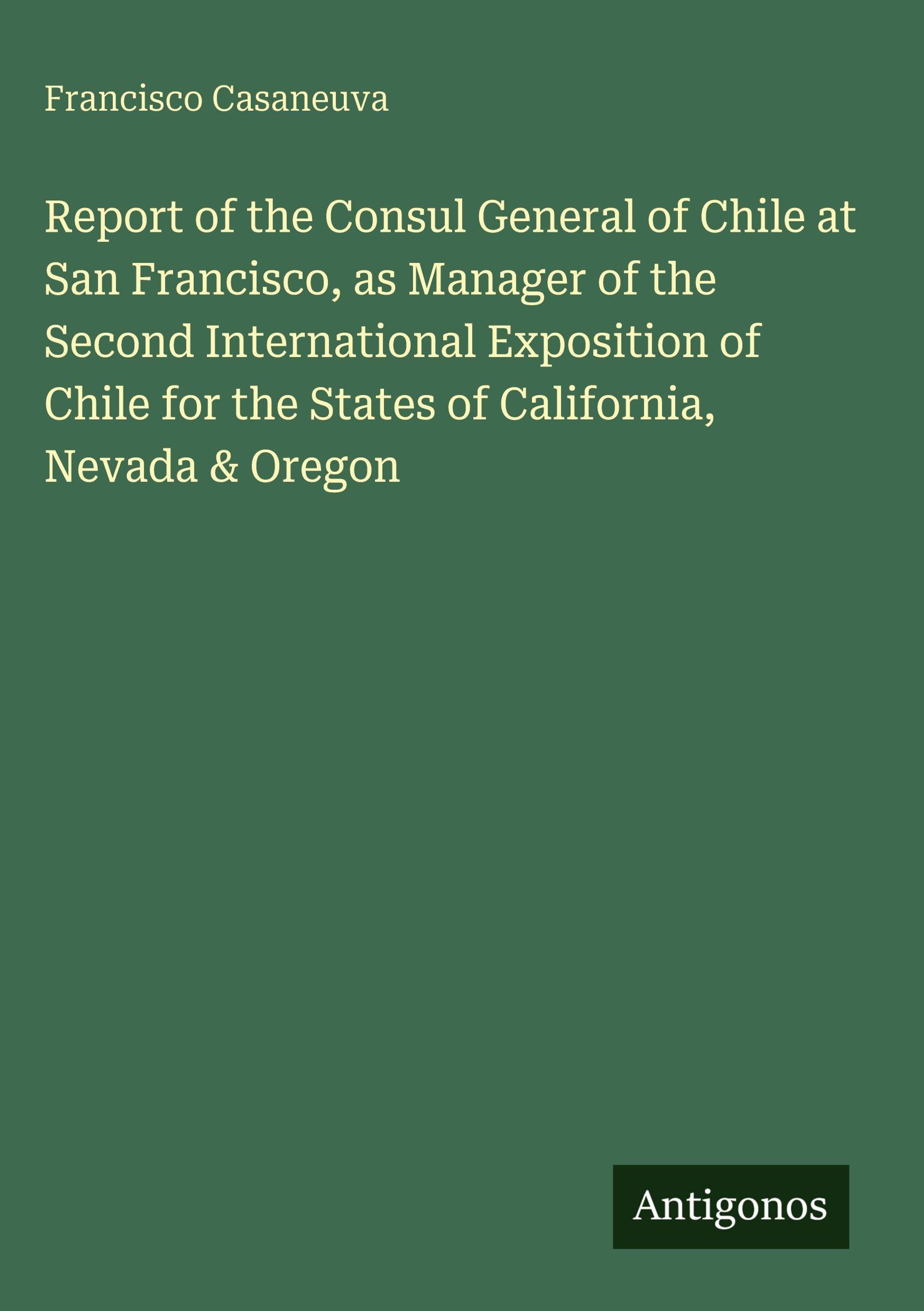 Francisco Casaneuva: Report of the Consul General of Chile at San Francisco, as Manager of the Second..., Gebunden
