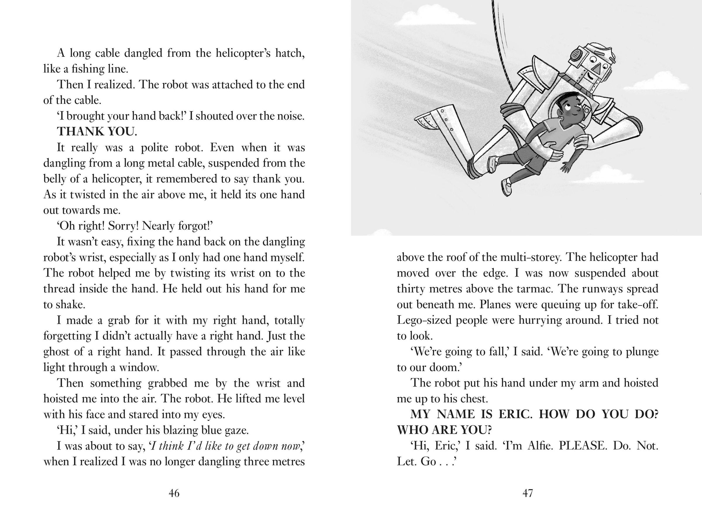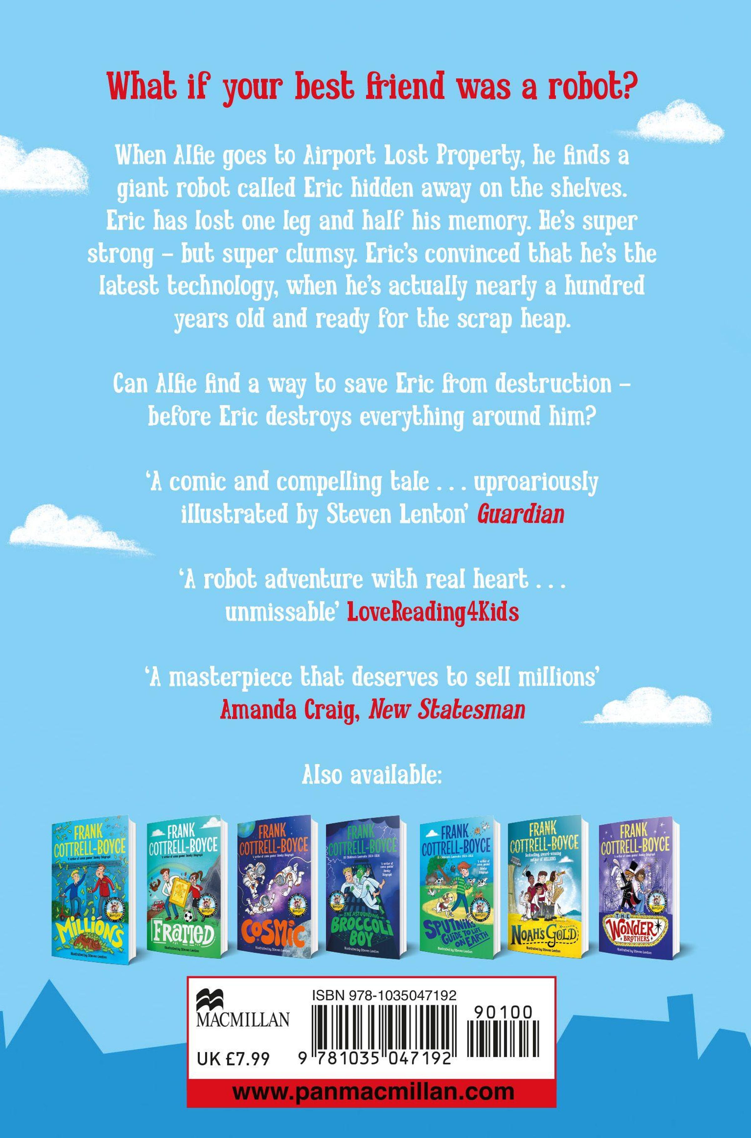 When Alfie goes to Airport Lost Property, he finds more than he bargained for. A lot more. Because there's a giant robot called Eric hidden away on the shelves. Eric has lost one leg and half his memory. He's super strong, but super clumsy. He's convinced that he's the latest technology, when he's actually nearly one hundred year's old and ready for the scrap heap.