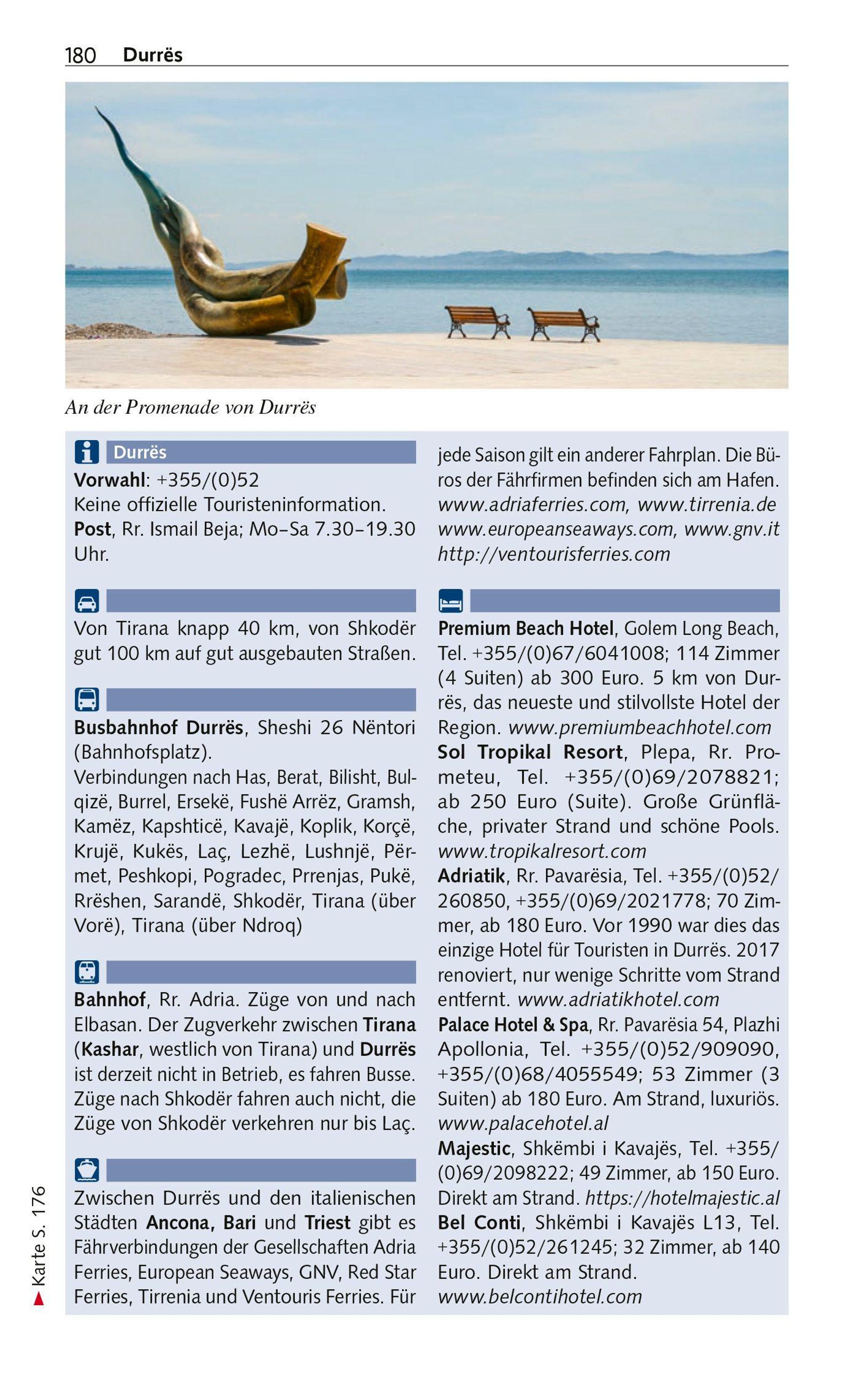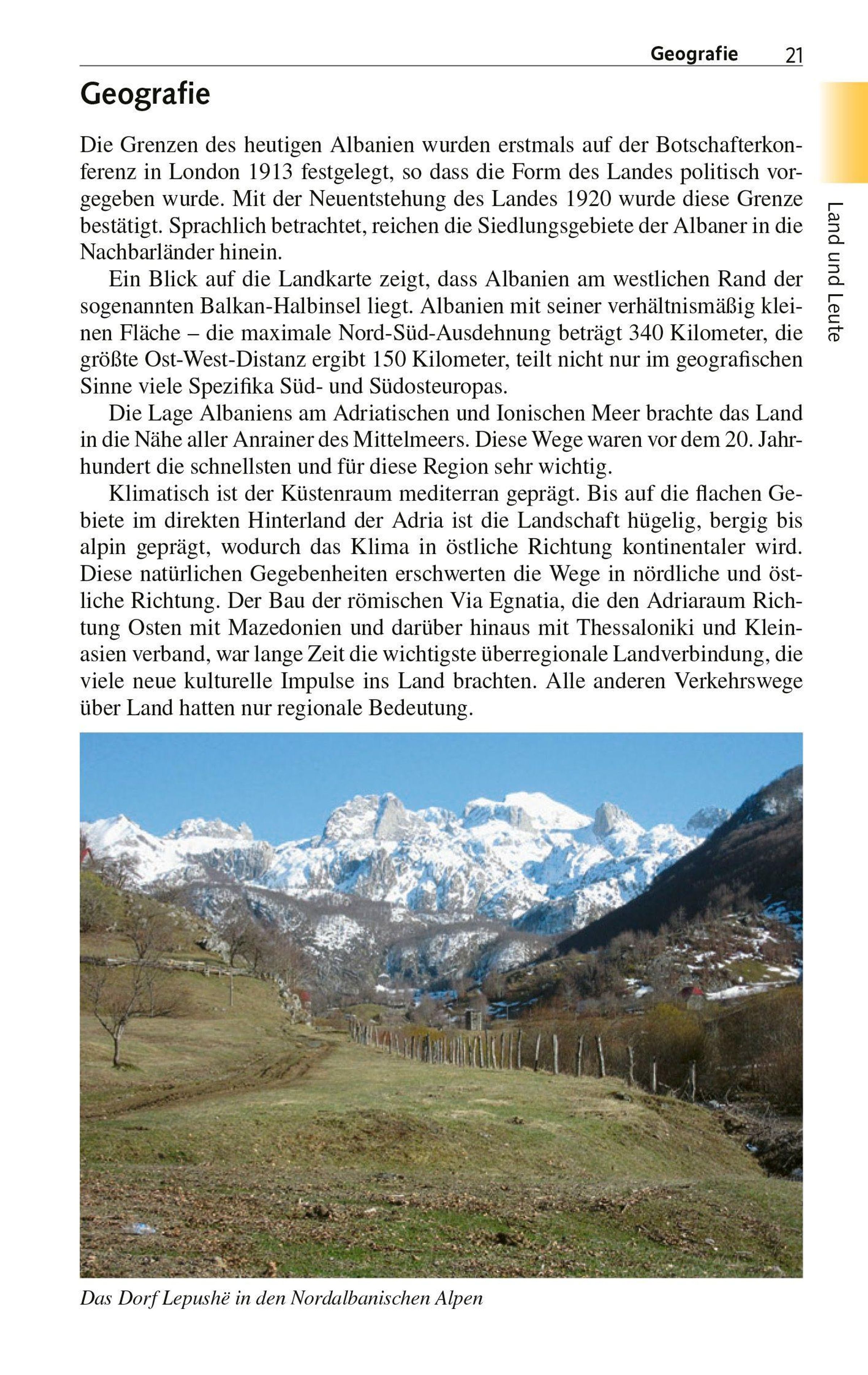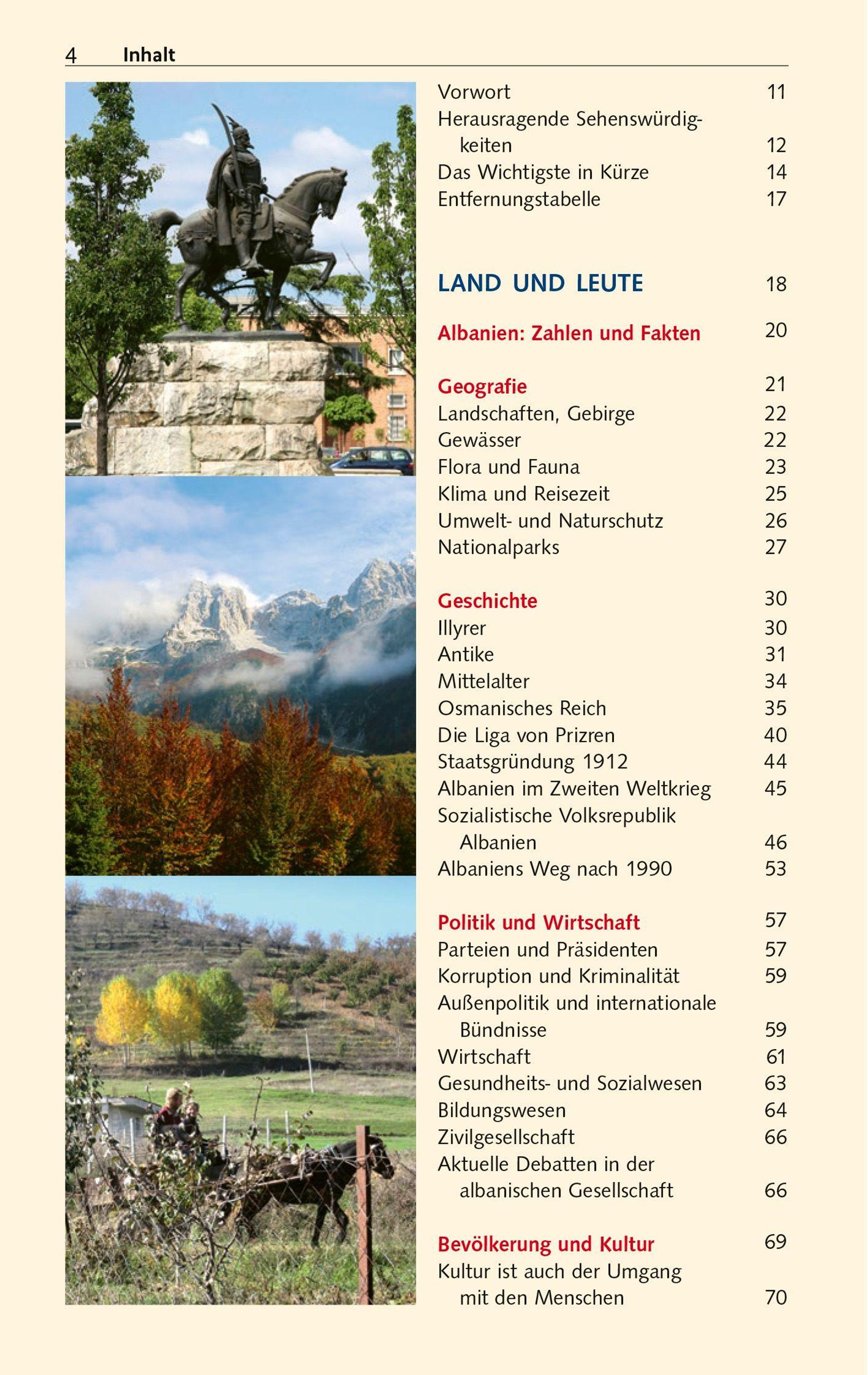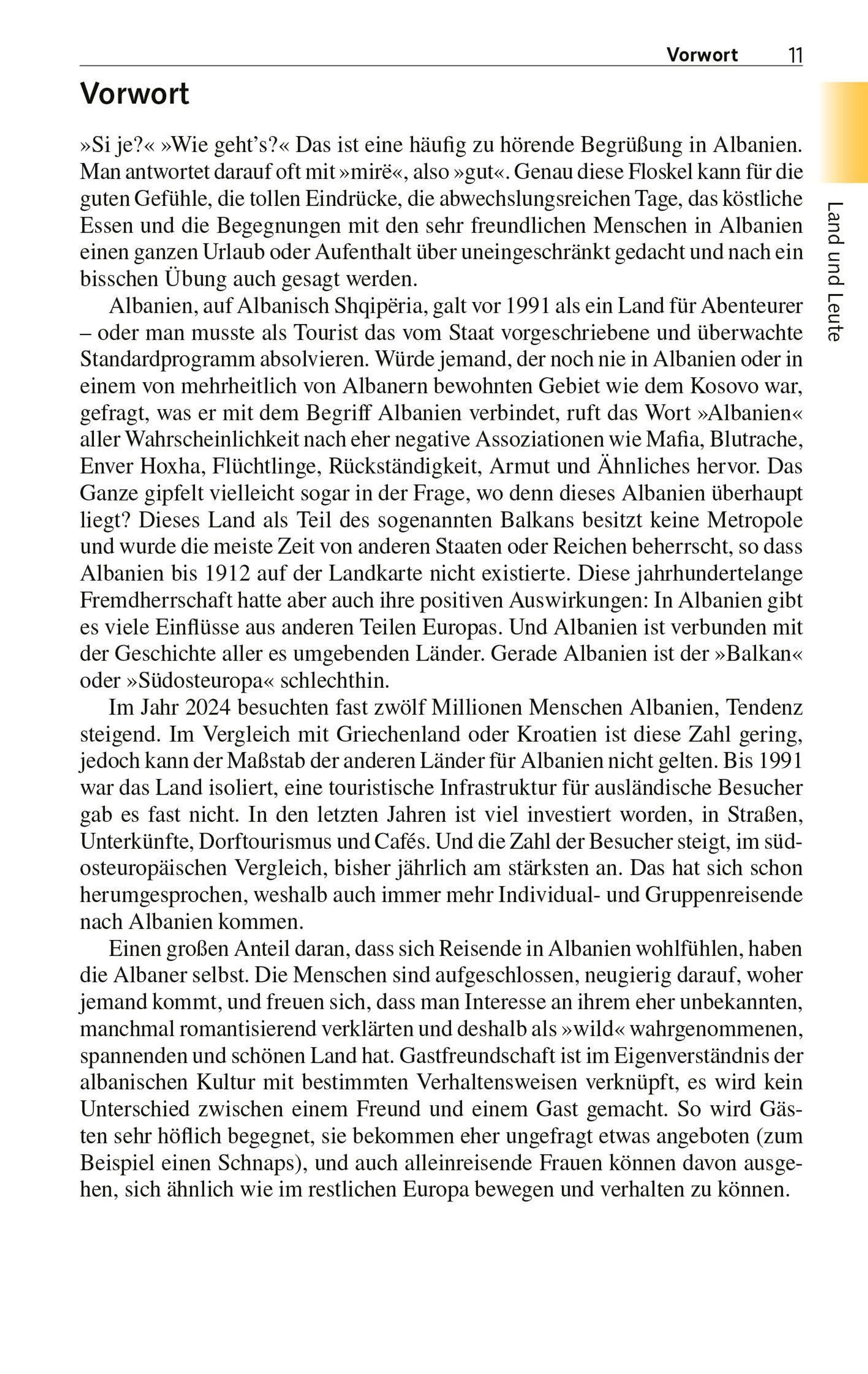 Der Reiseführer ALBANIEN aus dem Trescher Verlag macht mit allen natürlichen und kulturellen Attraktionen Albaniens bekannt und widmet sich auch vom Tourismus noch weitgehend unentdeckten Regionen. Hintergrundinformationen und Exkurse bieten einen vertieften Einblick in die Landesgeschichte, Traditionen und Lebensart. In einem Extra-Kapitel werden die vielfältigen Wandermöglichkeiten beschrieben. Ergänzt um eine Fülle an aktuellen Informationen zu Anreise, Unterkunft, Restaurants und Freizeitaktivitäten, dazu Übersichtskarten und Stadtpläne, ist dieses Buch bei der Urlaubsplanung wie vor Ort ein unverzichtbarer Weggefährte.