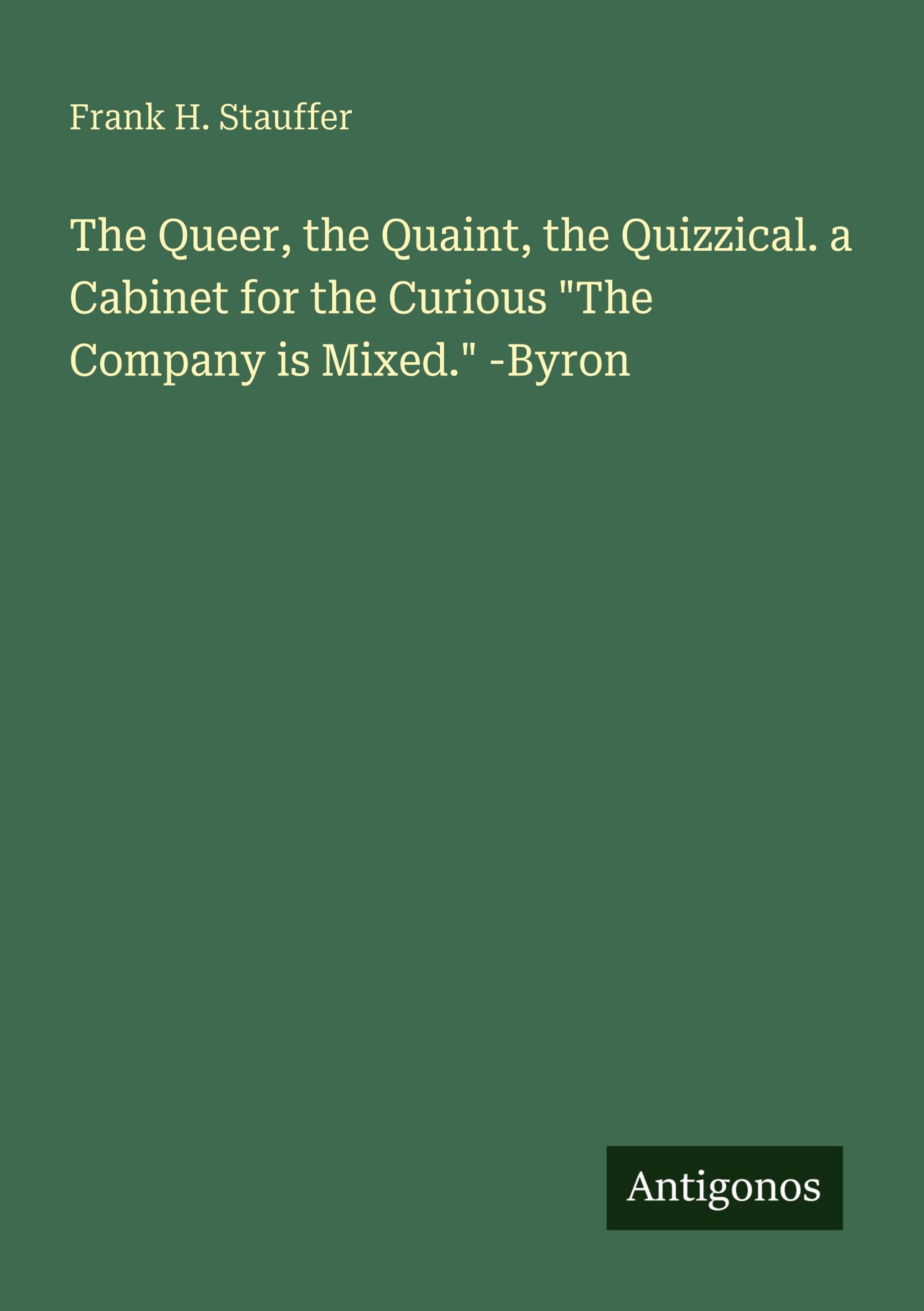 Frank H. Stauffer: The Queer, the Quaint, the Quizzical. a Cabinet for the Curious "The Company is Mixed." -Byron, Kartoniert / Broschiert