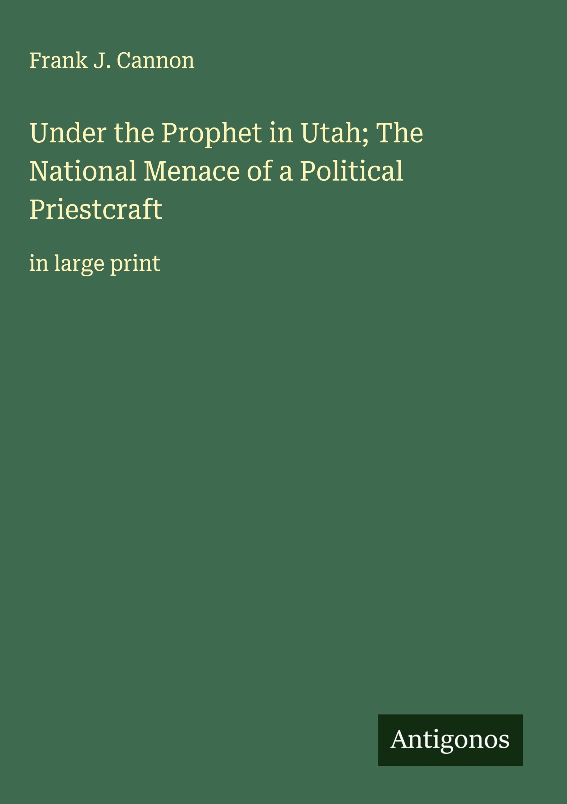 Frank J. Cannon: Under the Prophet in Utah; The National Menace of a Political Priestcraft, Gebunden