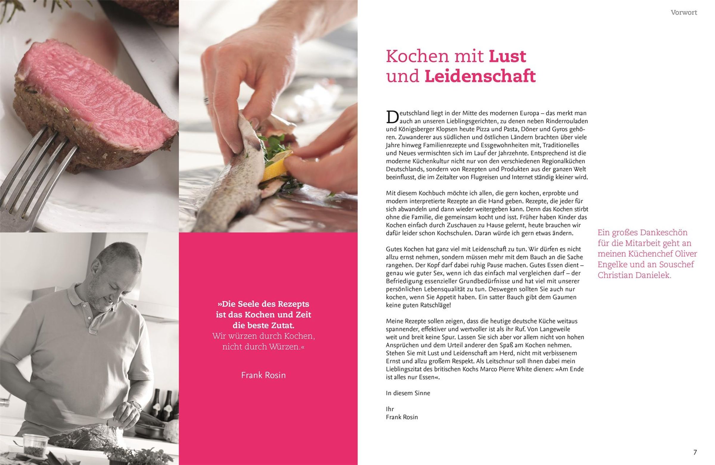Frank Rosins Kochbuch vereint die besten Aromen der verschiedenen Regionalküchen Deutschlands mit kulinarischen Einflüssen aus der ganzen Welt. Mit seinem typischen Rosin-Kniff macht der populäre Sternekoch aus deutscher Hausmannskost zeitgemäße Gerichte. Durch einfache Raffinesse und raffinierte Einfachheit entstehen originelle Gerichte mit frischen Zutaten, die Regionalität und Saisonalität verkörpern: Von Fenchel-Orangen-Salat mit warmer Räucherforelle bis zur Bärlauchschaumsuppe.