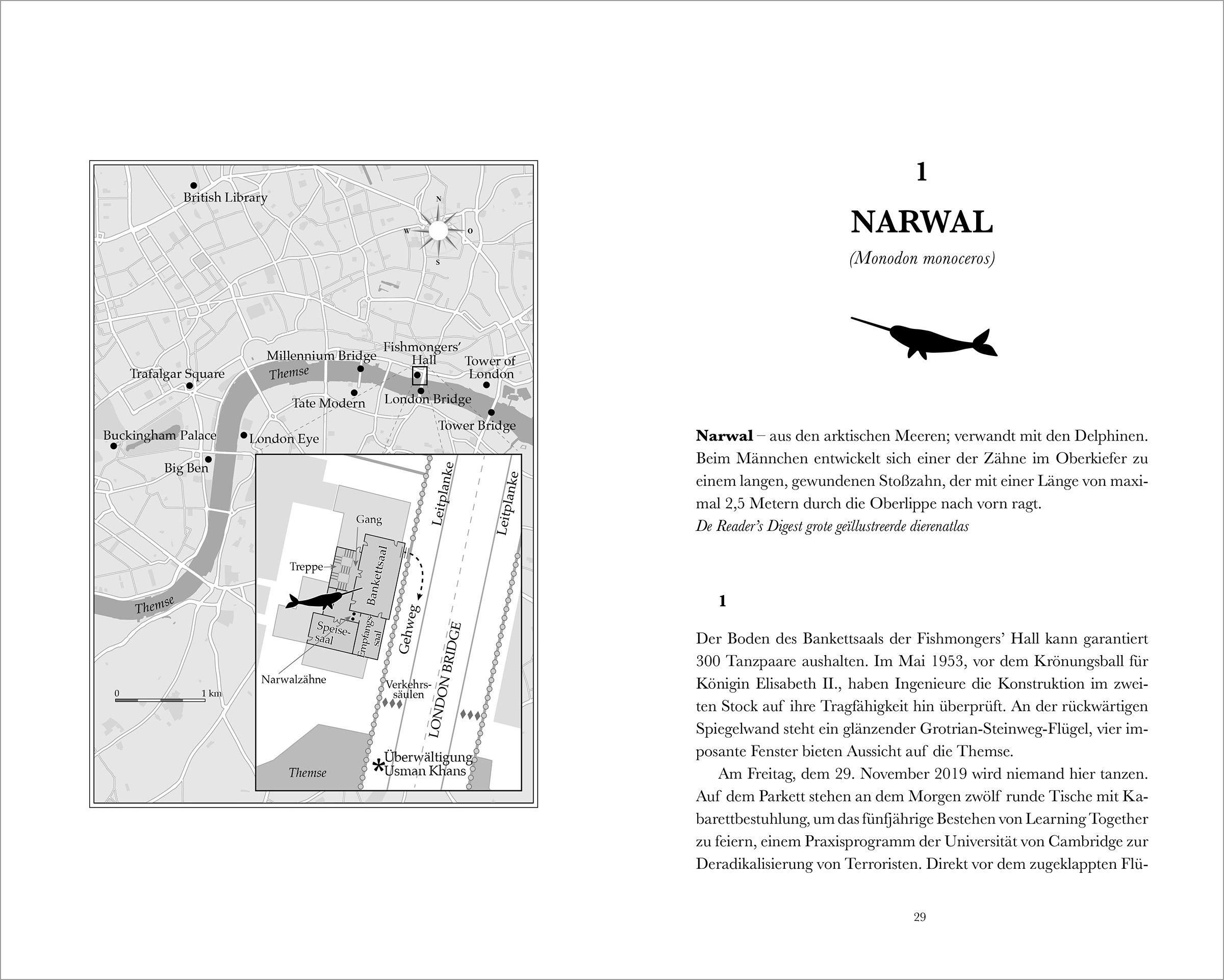 In den sieben Kapiteln des Buches sind diese sieben Tiere die tragischen Protagonisten. Jedes Kapitel bietet dazu eine vielschichtige und mitreißende Erzählung. Ein Einhornwal-Stoßzahn wird benutzt, um einen Terroranschlag in London zu verhindern; Walt Disney kauft von Inuit-Kindern Lemminge, um sie über eine Klippe zu jagen; Russland und Norwegen spielen ihren neuen Kalten Krieg mit Rentieren als Spielfiguren aus; ein ungeklärtes Massensterben von Ringelgänsen wird aufgeklärt; und Westerman riskiert sein eigenes Leben und das seiner Tochter beim Campen im norwegischen Svalbard am Ort eines tödlichen Eisbärenangriffs.