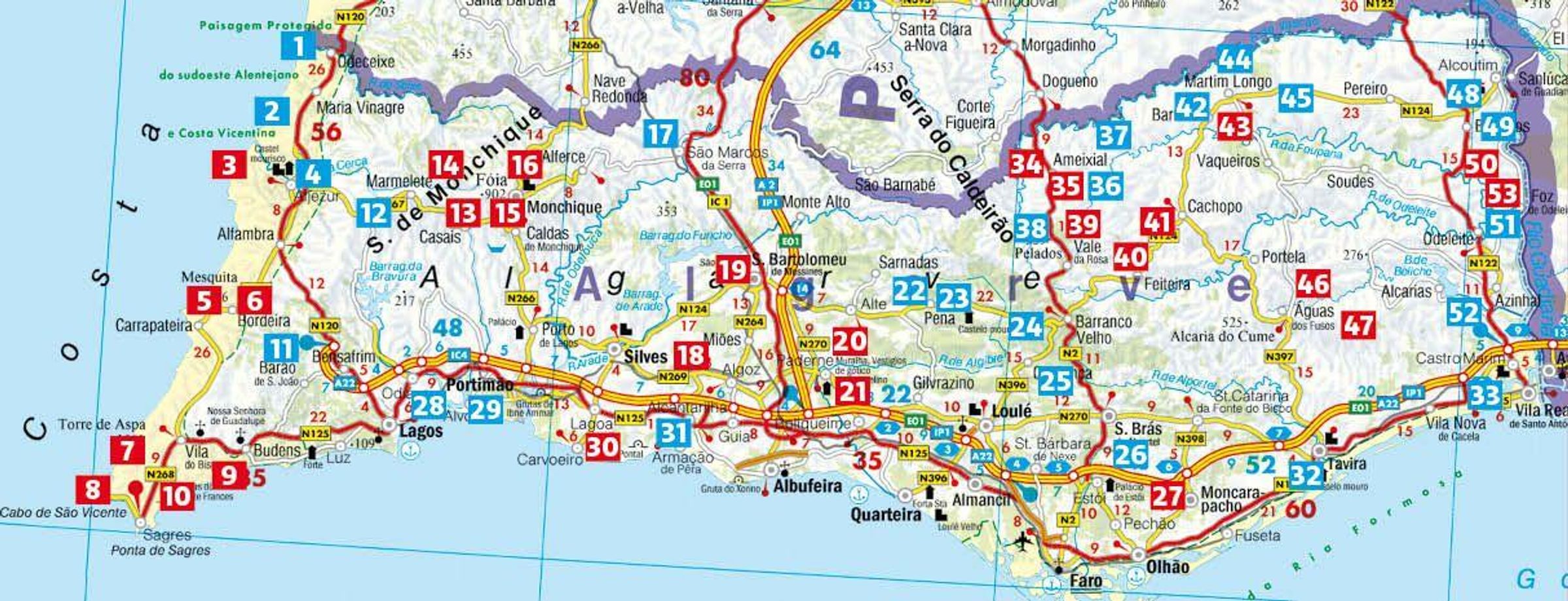 - 52 sorgfältig ausgewählte Wanderungen an der Algarve - von spektakulären Küstenwanderungen am Atlantik bis zu ruhigen Touren im ursprünglichen Hinterland Portugals.