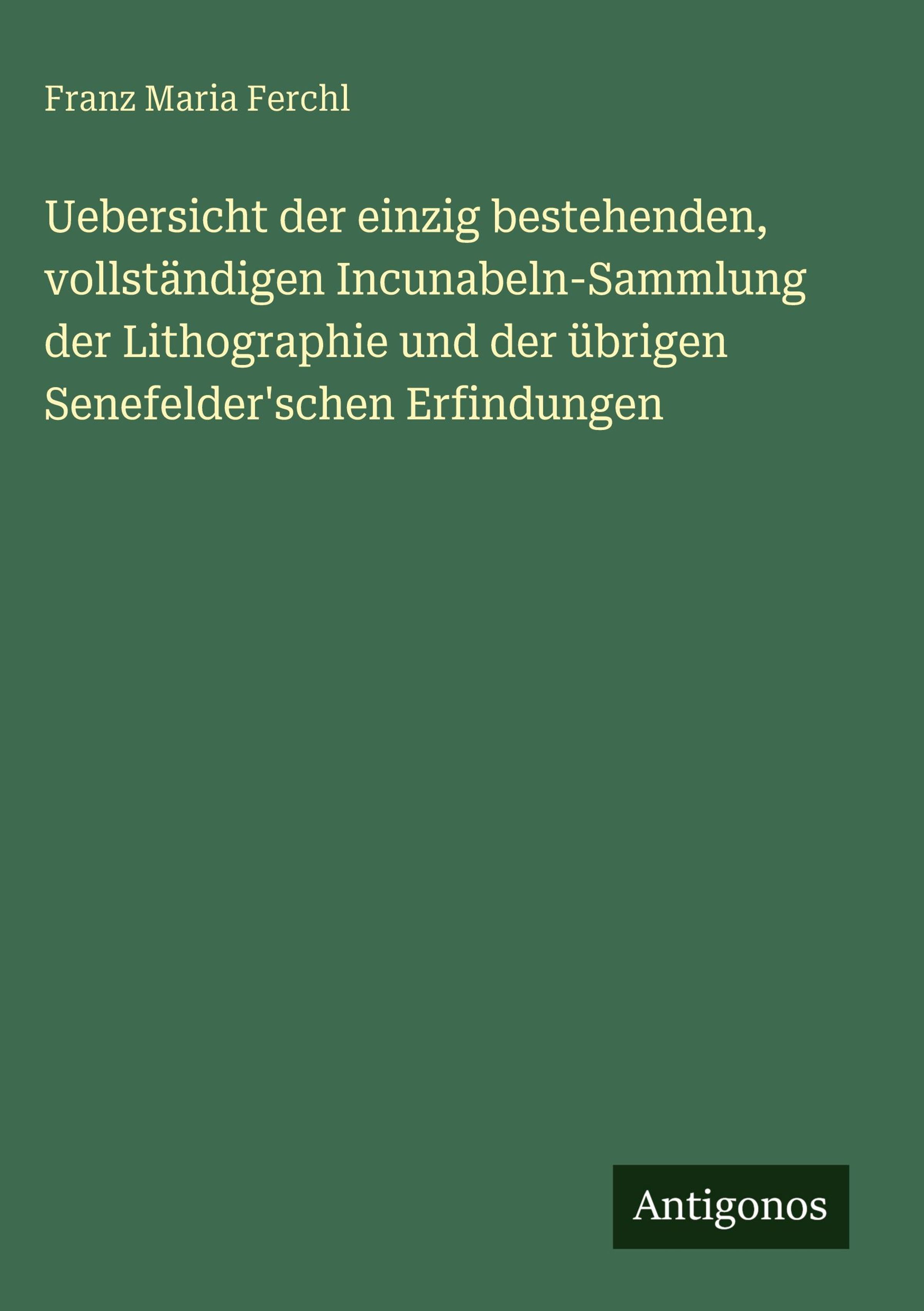 Franz Maria Ferchl: Uebersicht der einzig bestehenden, vollständigen Incunabeln-Sammlung der Lithographie und..., Gebunden