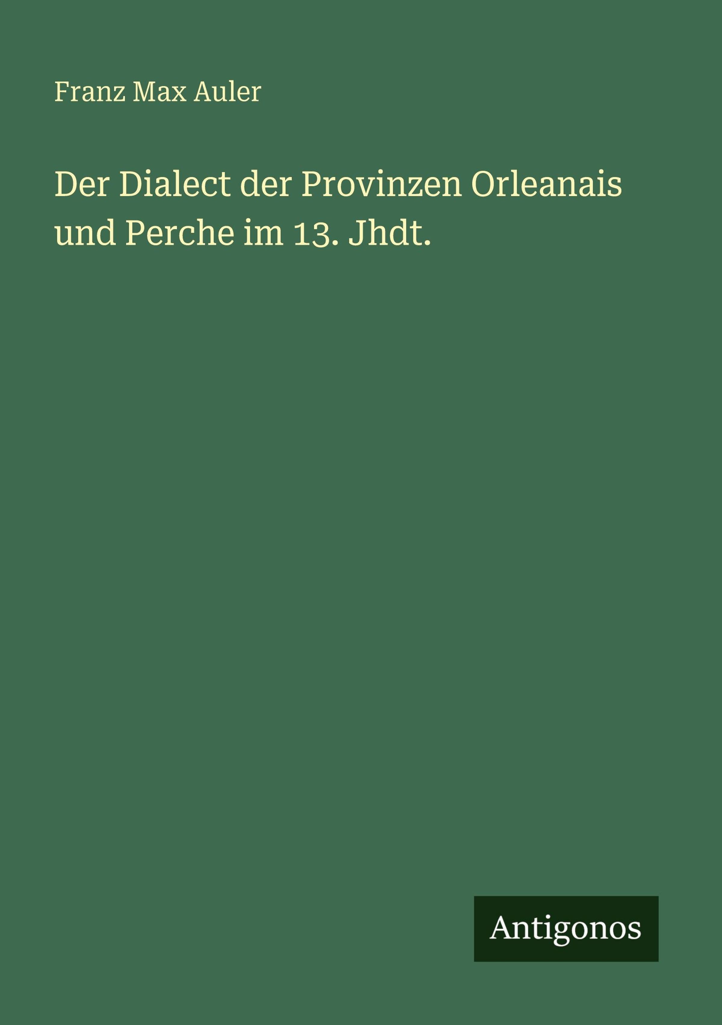 Franz Max Auler: Der Dialect der Provinzen Orleanais und Perche im 13. Jhdt., Kartoniert / Broschiert