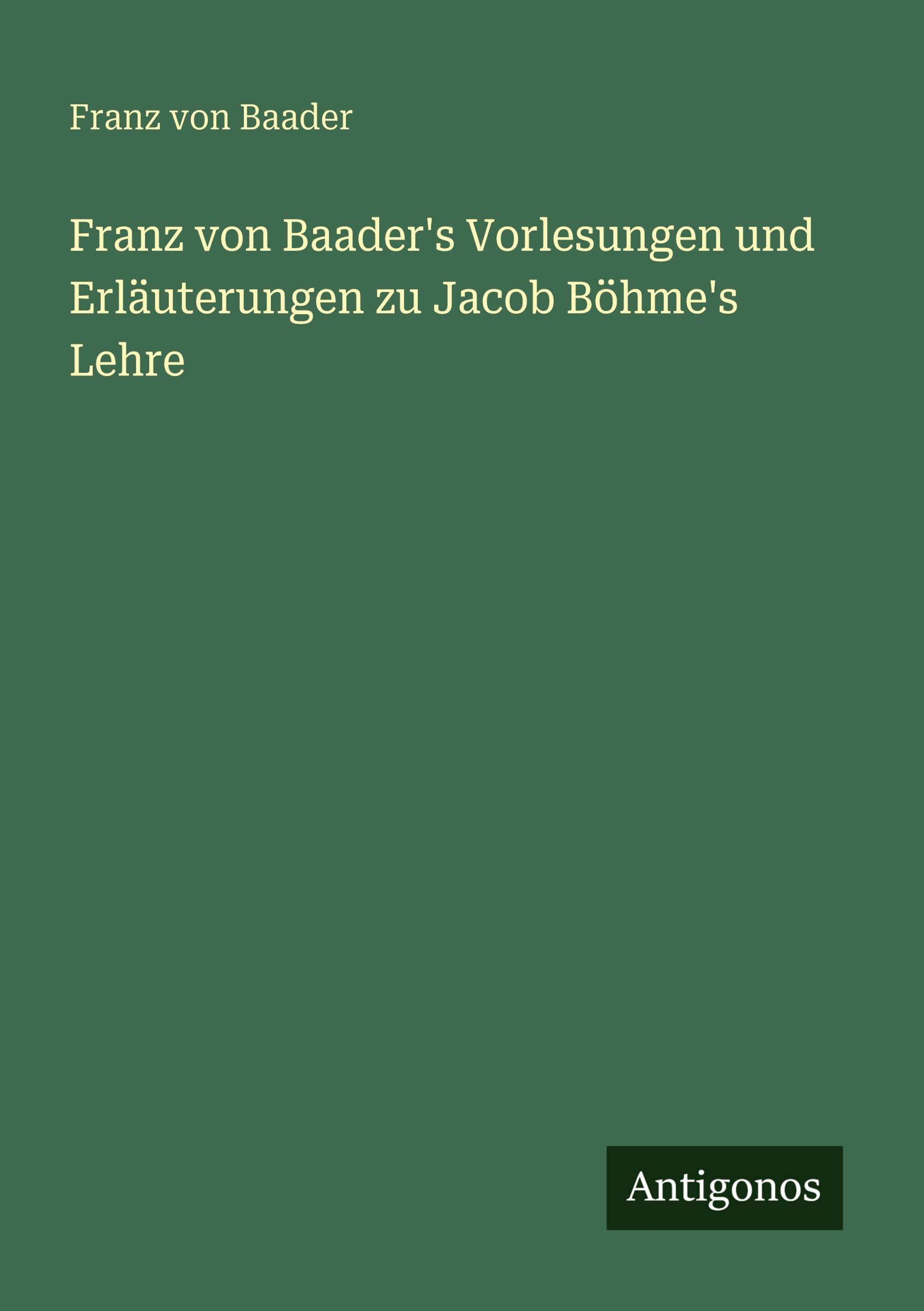 Franz von Baader's Vorlesungen und Erläuterungen zu Jacob Böhme's Lehre