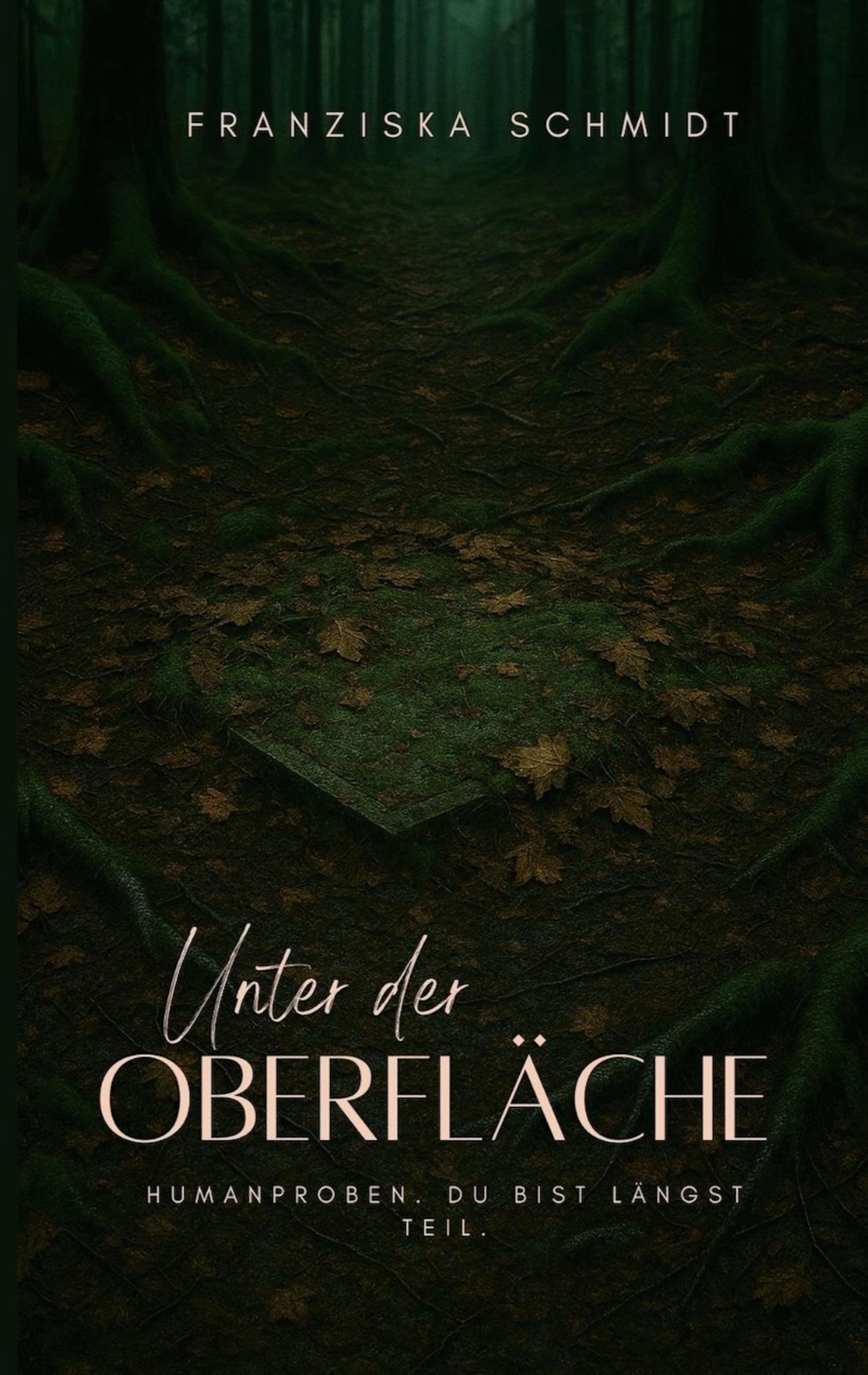 FRANZISKA SCHMIDT, Unter der Oberfläche, Humanproben. Du bist längst Teil. Dunkler Wald mit dichten Bäumen und Blättern am Boden., Buch