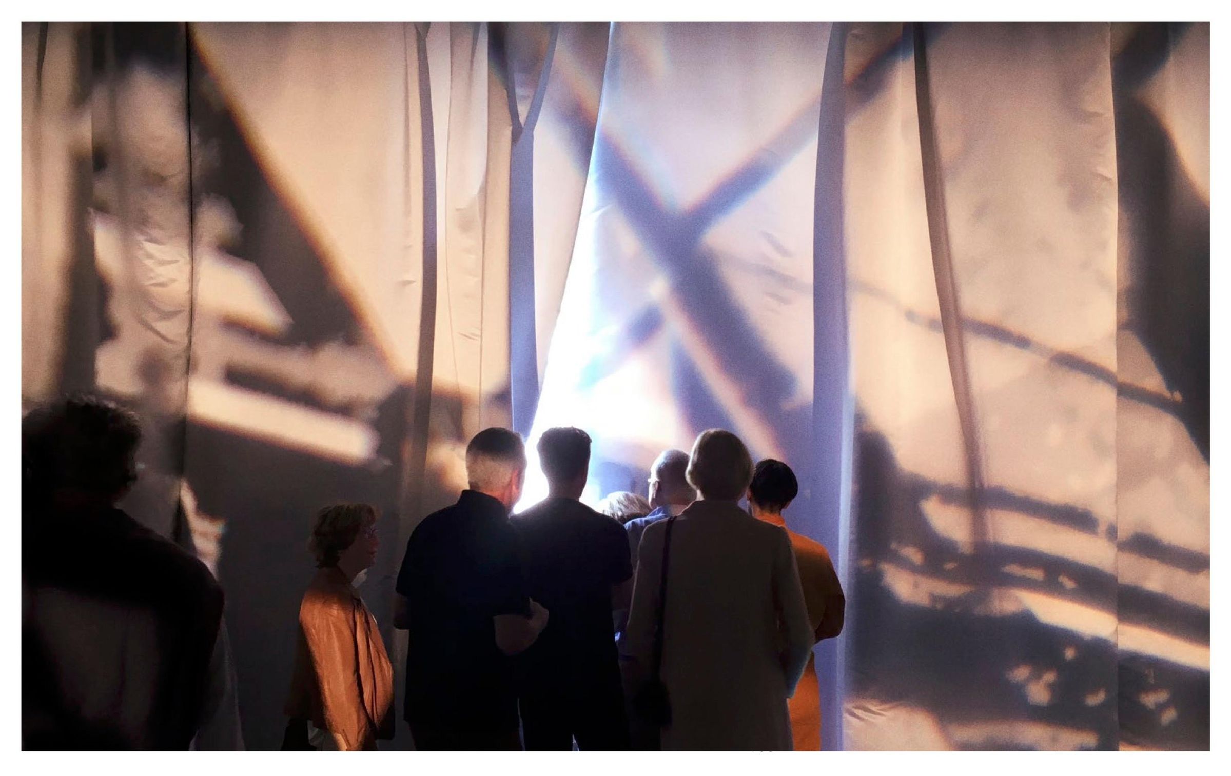 Die Formensprache von Frauke Dannert (geb. 1979 in Herdecke, lebt und arbeitet in Köln) basiert auf dem künstlerischen Verfahren der Collage. Aus gefundenem und gesammeltem Material - von Pflanzenscans bis hin zu Architekturfotografien - lässt die Künstlerin zarte Formen tanzender, sich windender, innehaltender Bildelemente entstehen. Diese ordnet sie in variierenden (Bild-)Räumen an, bestehend aus Bildträgern wie Papier, roher Baumwolle oder der reinen Wand. Ihre Collagearbeiten changieren zwischen organisch und architektonisch, zwischen realen und imaginativen Räumen und eröffnen darüber einen Assoziationsraum, ähnlich wie Wolkengebilde, in denen wir immer wieder neue Formen entdecken können. Mit Projektionen und farbigen Teppichen überlagert Dannert die vorhandene Architektur und verfremdet das Raumerlebnis: Die optische Illusion der Collage erweitert sich ins Räumliche.