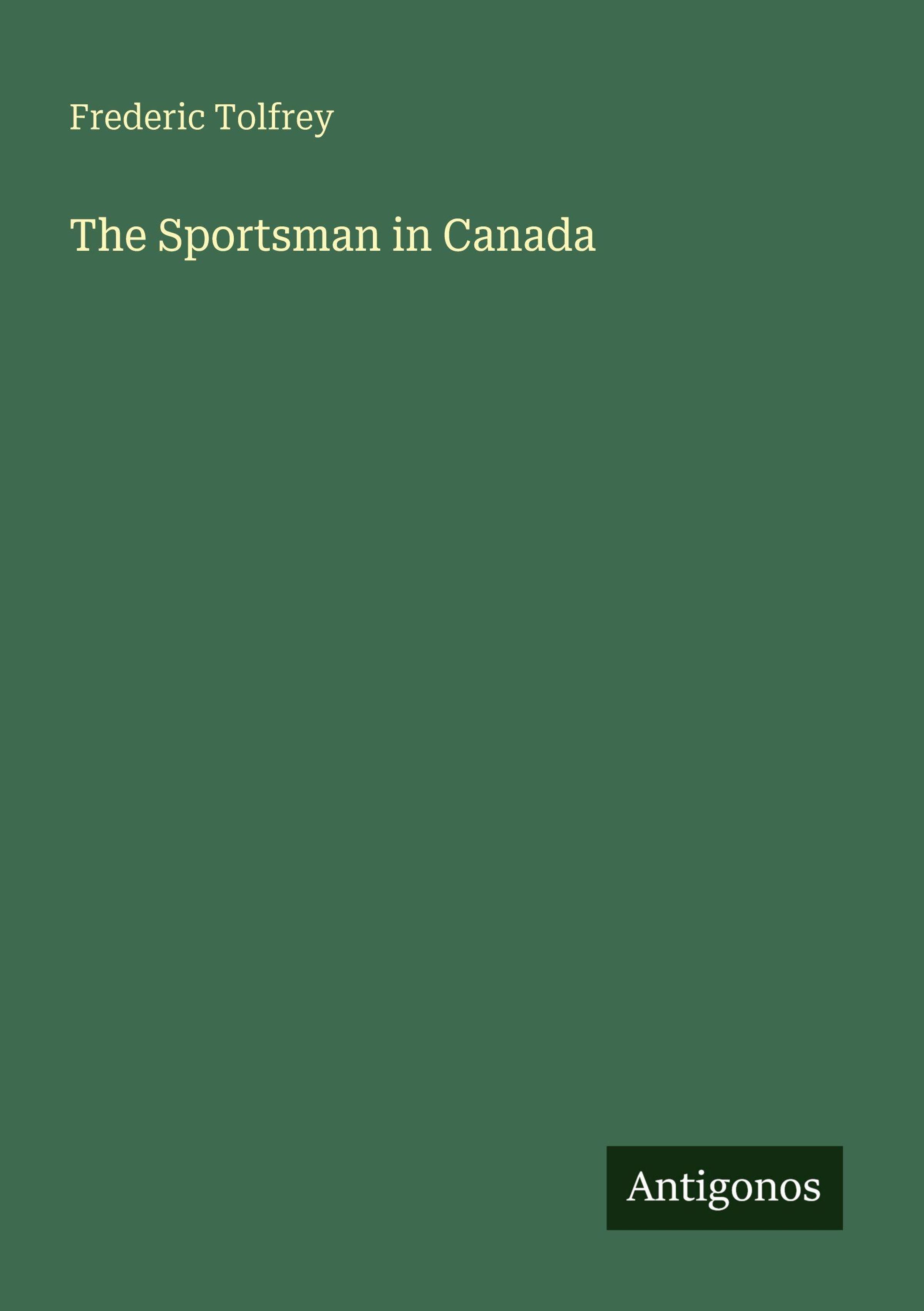 Text: "Frederic Tolfrey, The Sportsman in Canada, Antigonos". Dunkelgrüner Hintergrund mit weißer Schrift., Buch
