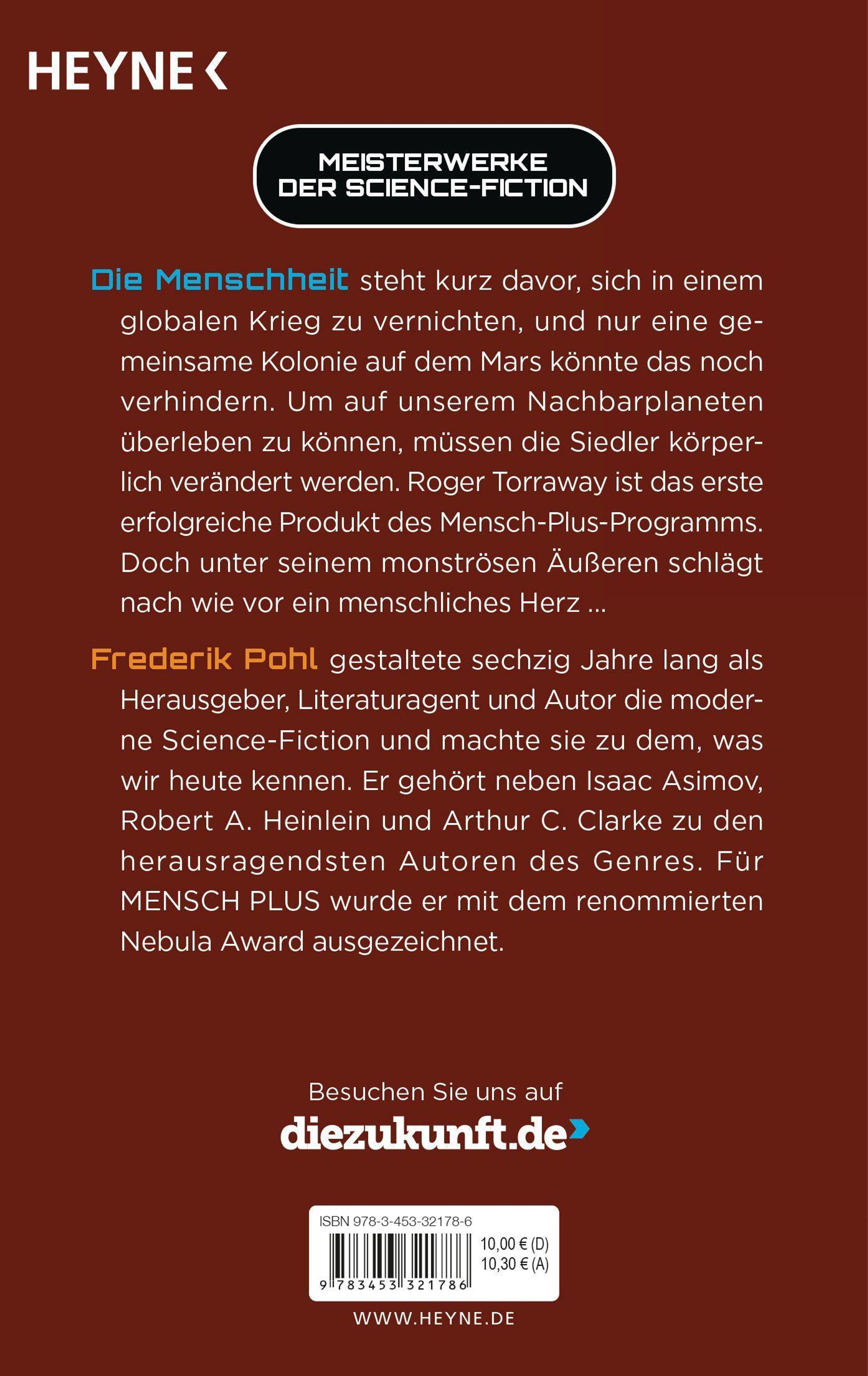 Die Menschheit steht kurz davor, sich in einem globalen Krieg zu vernichten und die Erde mit in den Abgrund zu reißen. Deswegen wird ein Marskolonisten-Programm gestartet, aber um auf unserem unwirtlichen Nachbarplaneten ohne Hilfsmittel zu überleben, müssen die Körper der Siedler verändert werden. Roger Torraway ist das erste erfolgreiche Produkt des Mensch-Plus-Programms. Äußerlich hat er nur noch wenig mit seinen Mitmenschen gemein. Aber innerlich ist er nach wie vor ein Mann - und genau hier liegt sein Dilemma ...