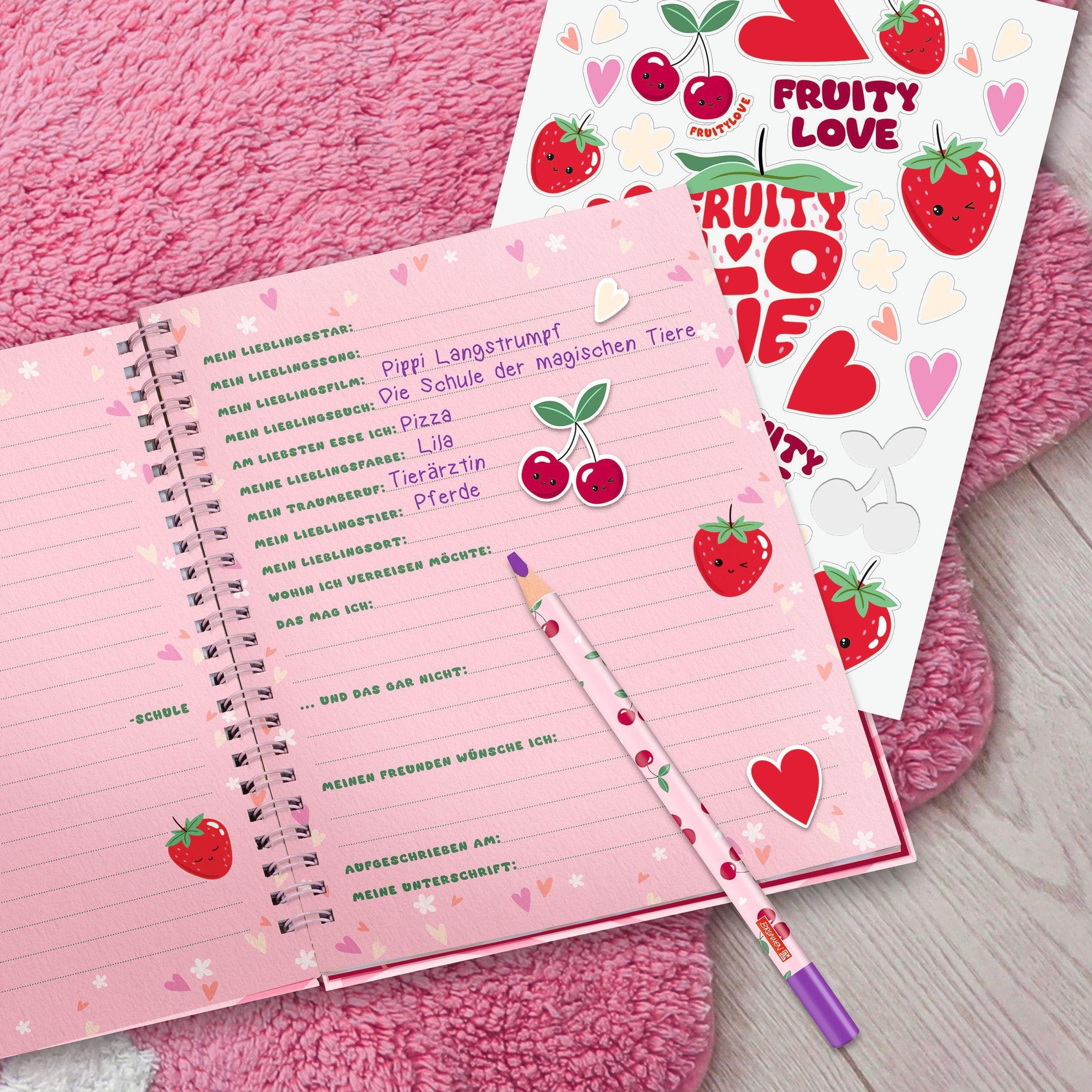Blattgröße: 16×21 cm ? 80 Seiten ? Wire-O-Bindung ? Grafik-Einband, Farbe: rosa, rot, Folienprägung ? illustrierte Seiten, mit Geburtstagskalender und mit Stickerbogen