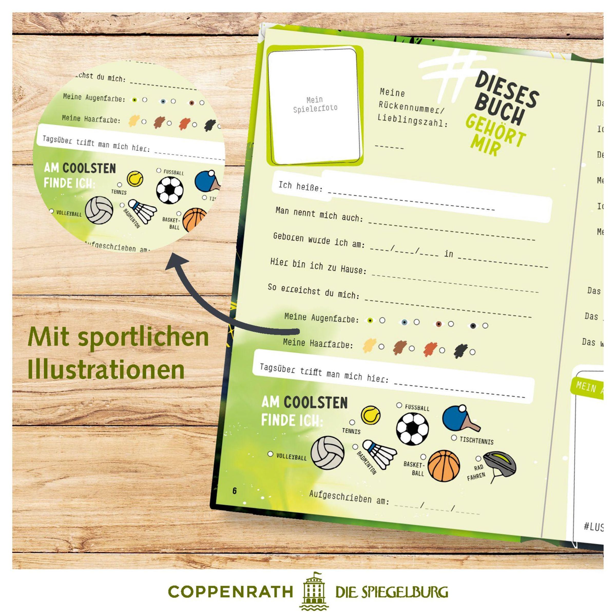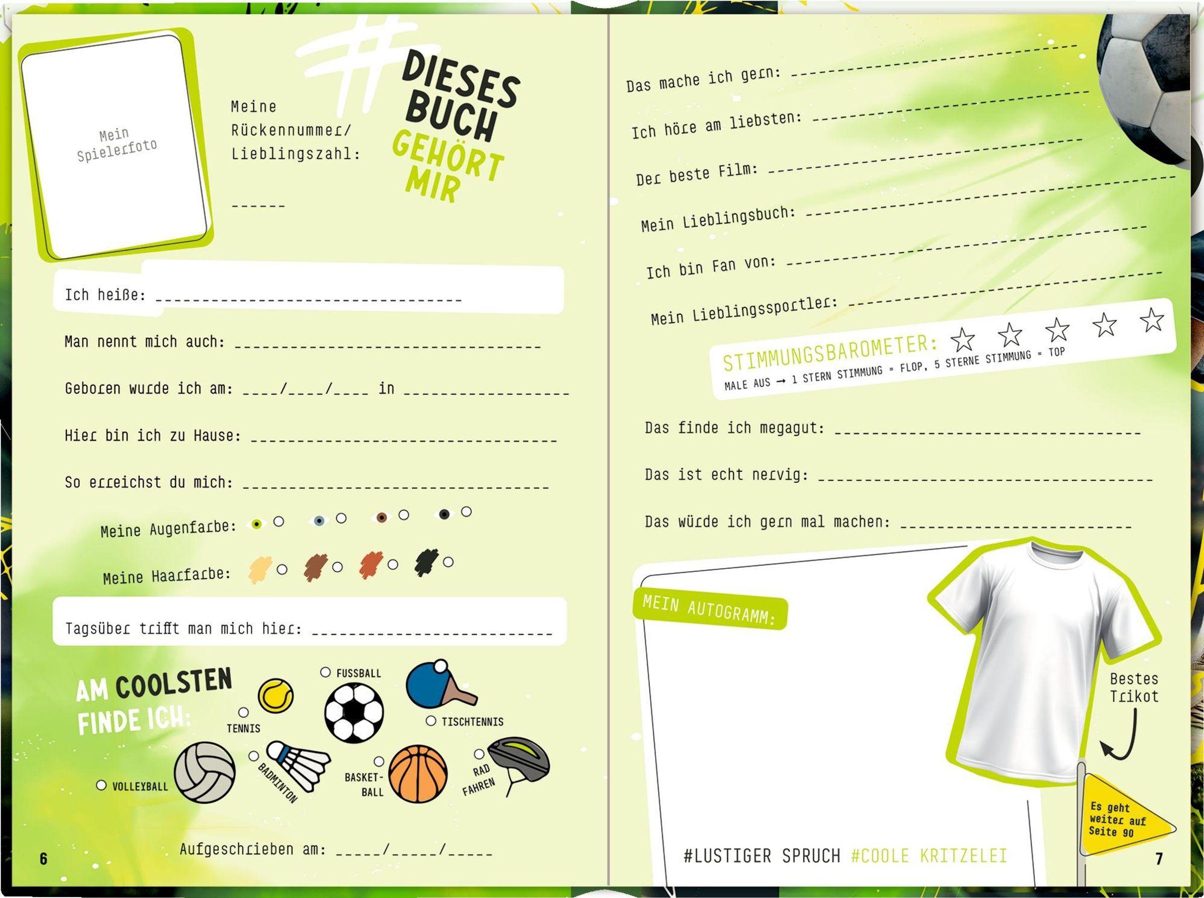 "MEINE FREUNDE" in großer Schrift. Ein Fußballspieler in Aktion mit einem Ball und gelben Spritzern im Hintergrund., Buch