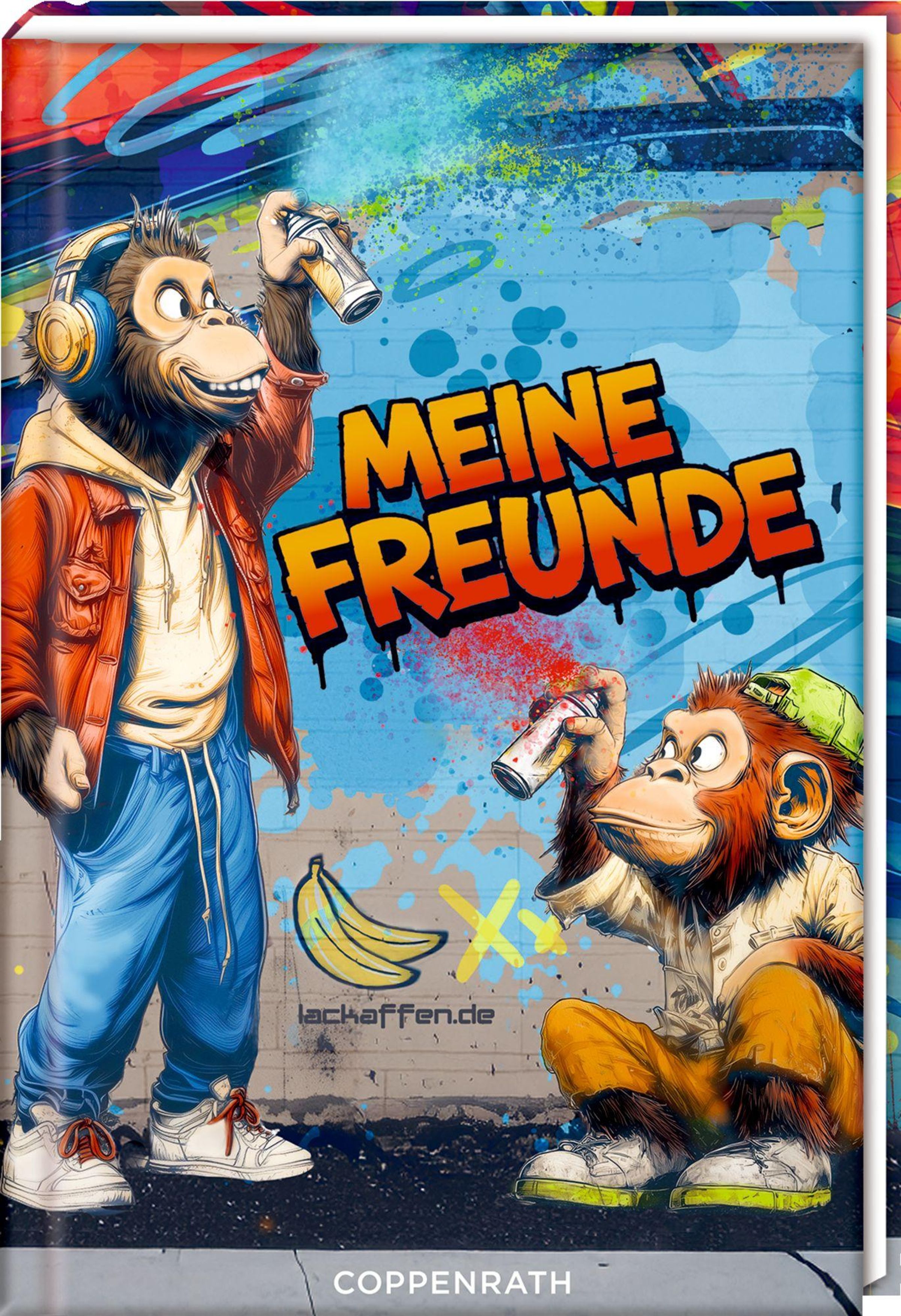 **Meine Freunde. lackaffen.de. COPPENRATH.** Zwei coole Affen malen mit Sprühdosen auf eine bunte Wand., Buch