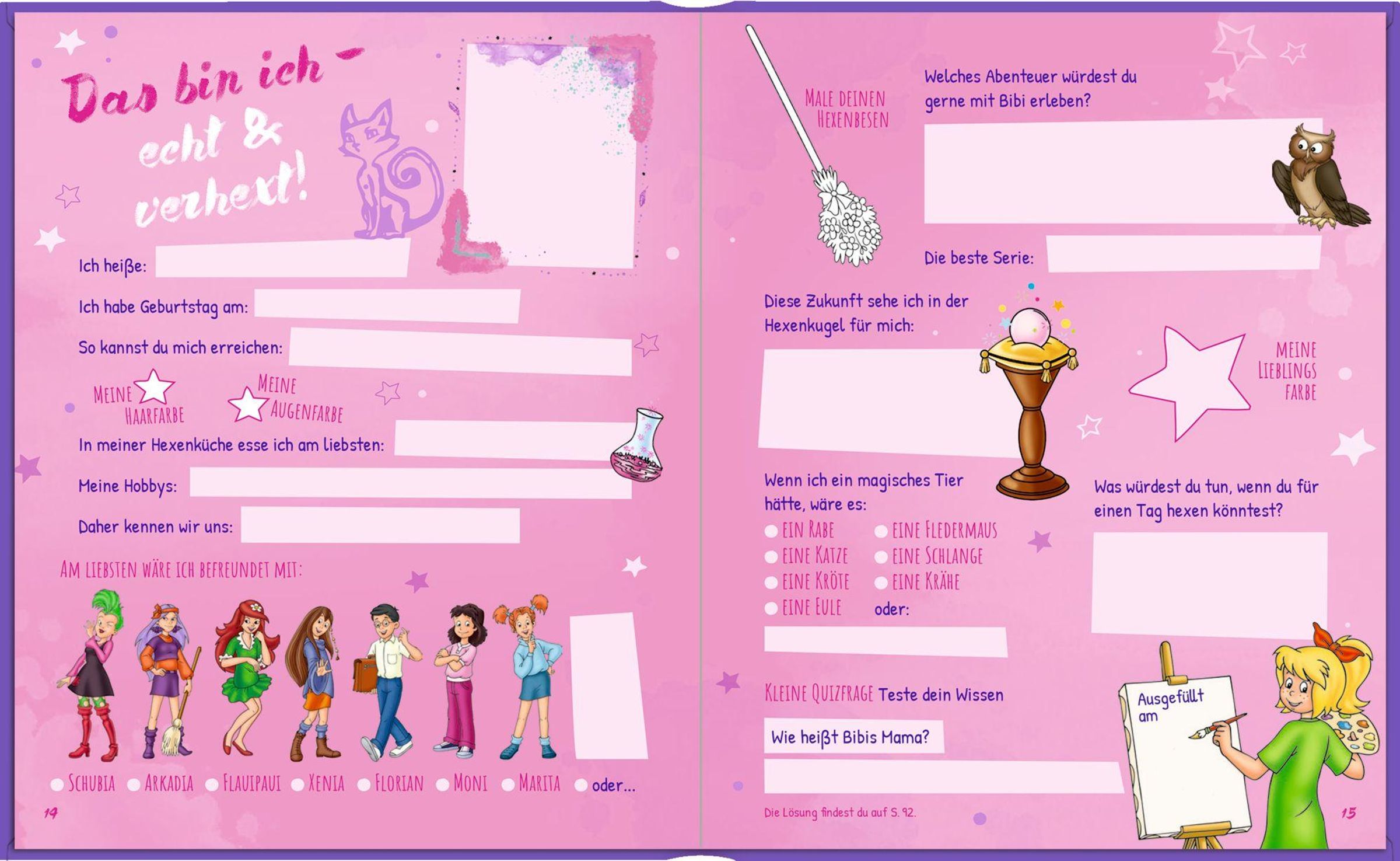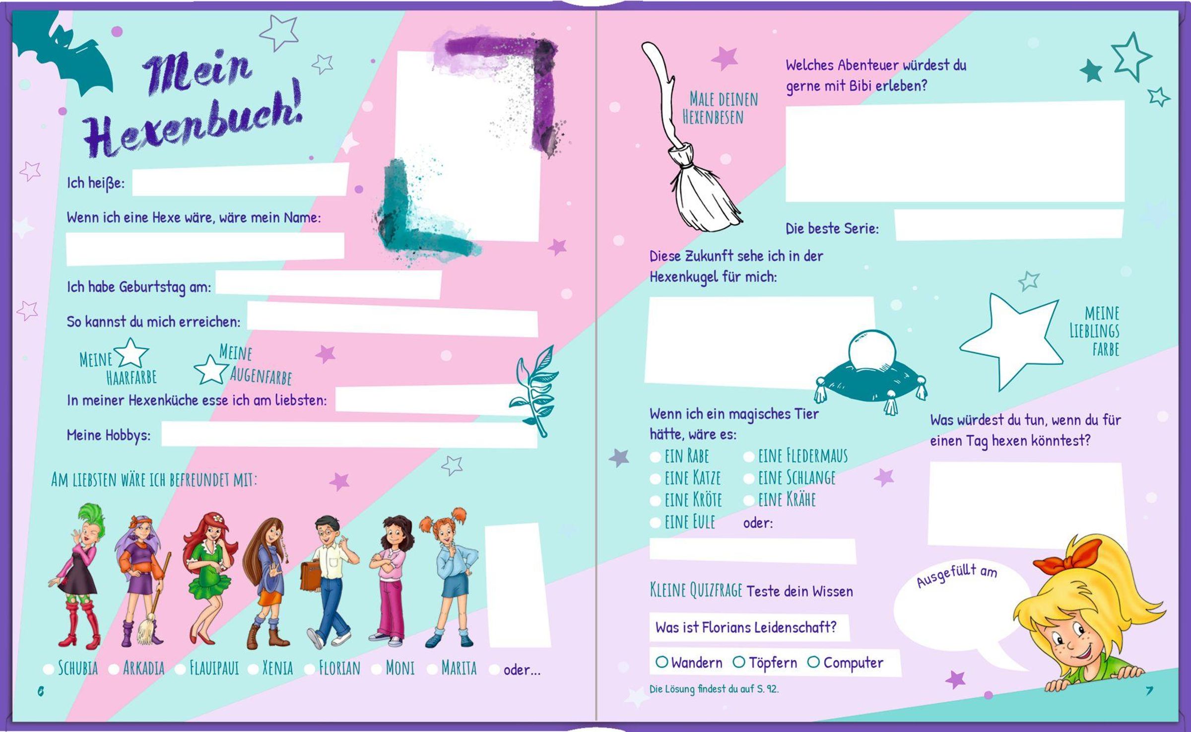 Beliebtes Freundebuch für Mädchen und Jungen mit Bibi Blocksberg Hochwertiges Cover mit schimmernder Holofolie Kleine Quizfragen mit Lösungen aus Bibis Welt Ideal für Schule, Kindergarten und erste Freundschaften Für 38 Freundschaftseinträge Dieses liebevoll gestaltete Freundebuch mit Bibi Blocksberg ist ideal, um erste Freundschaften kreativ festzuhalten. Kleine Rätselfragen aus Bibis Welt machen das Eintragen besonders spannend. Bekannte Motive und Charaktere sorgen für hohe Wiedererkennung und laden Kinder dazu ein, ihre Freunde spielerisch kennenzulernen.