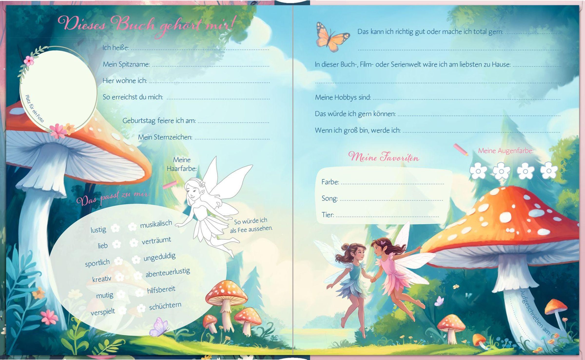 Magisches Feen-Cover mit Glitzer und Holofolie Platz für 41 Freundschaftseinträge Mit liebevollen Feen-Illustrationen auf allen Innenseiten Für Mädchen ab 6 Jahren Mit Geburtstagskalender