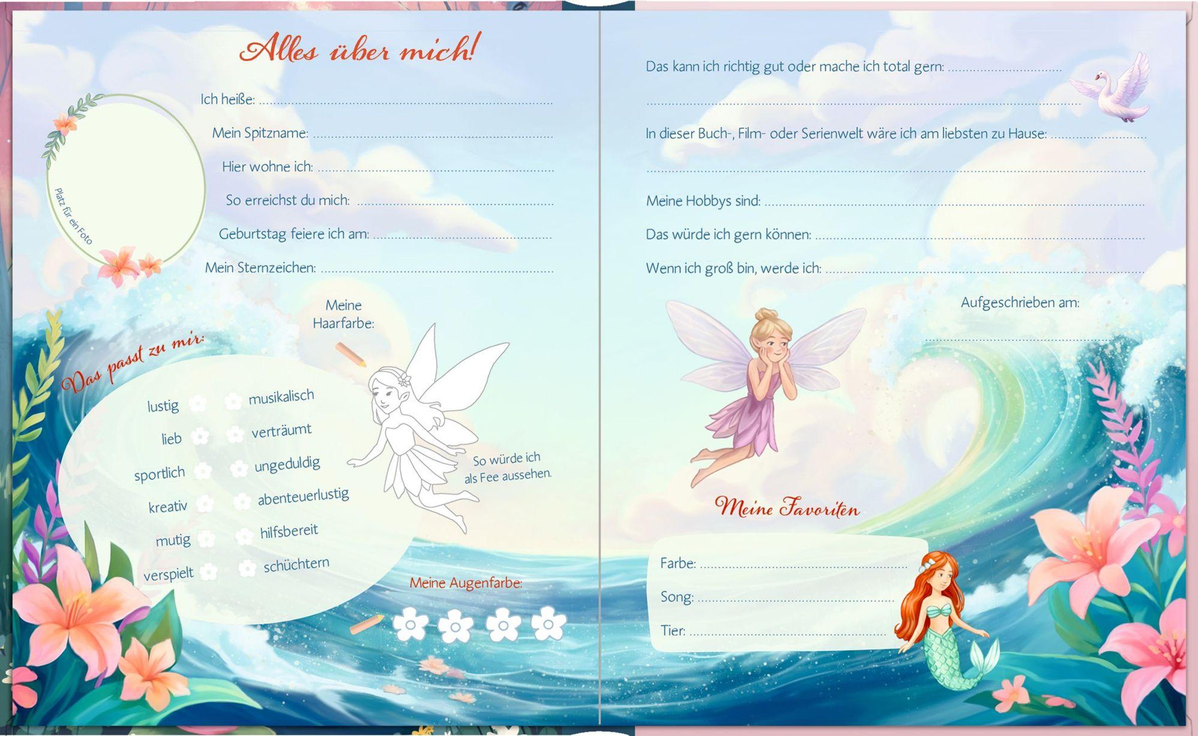 Dieses Freundebuch für Mädchen ab 6 Jahren entführt in eine zauberhafte Feenwelt und lädt zum Ausfüllen, Malen und Gestalten ein. Die sanften Aquarellfarben, der funkelnde Glitzerlack und die zauberhaften Illustrationen machen jede Seite zu etwas ganz Besonderem. Ein ideales Geschenk für Mädchen - perfekt für die Grundschule, zum Geburtstag oder zum Schulanfang