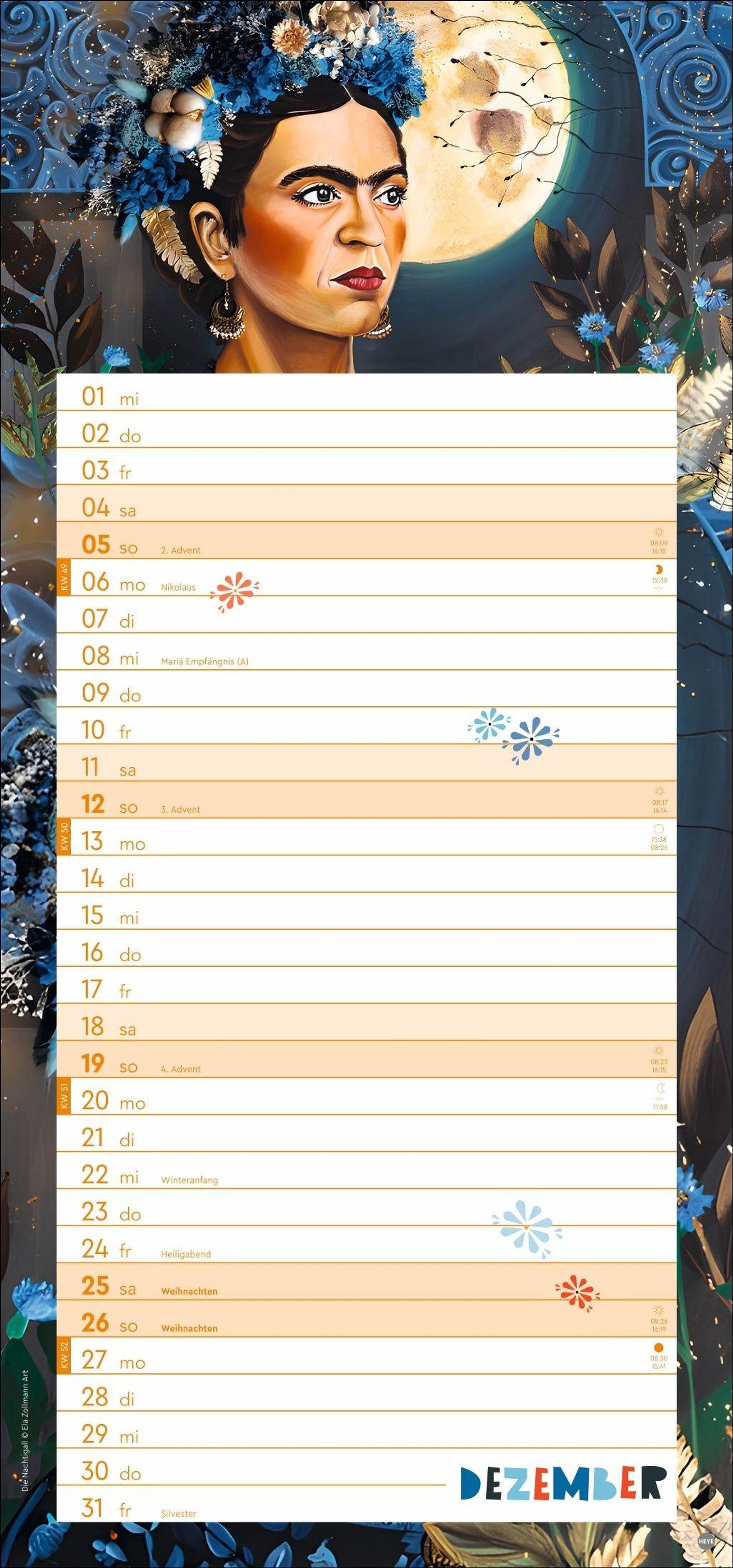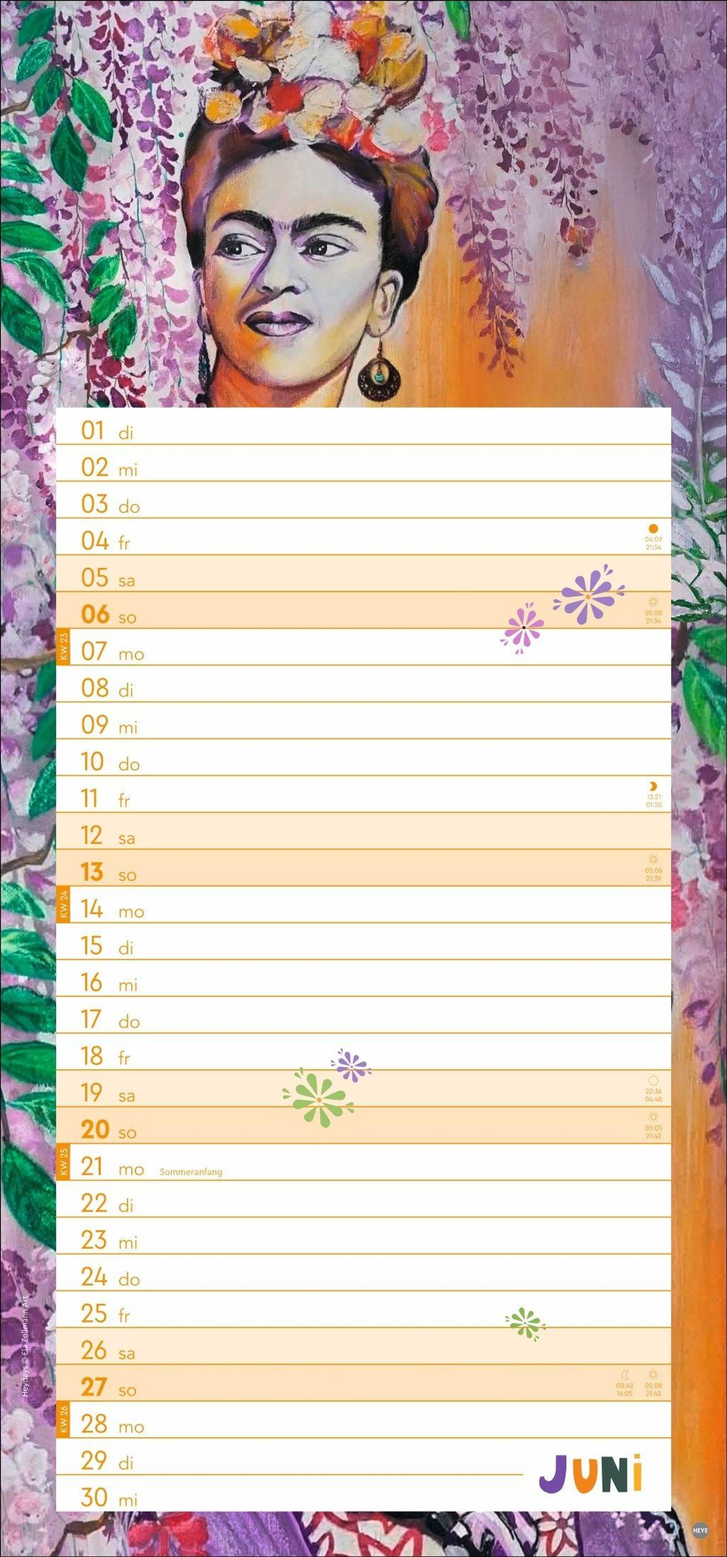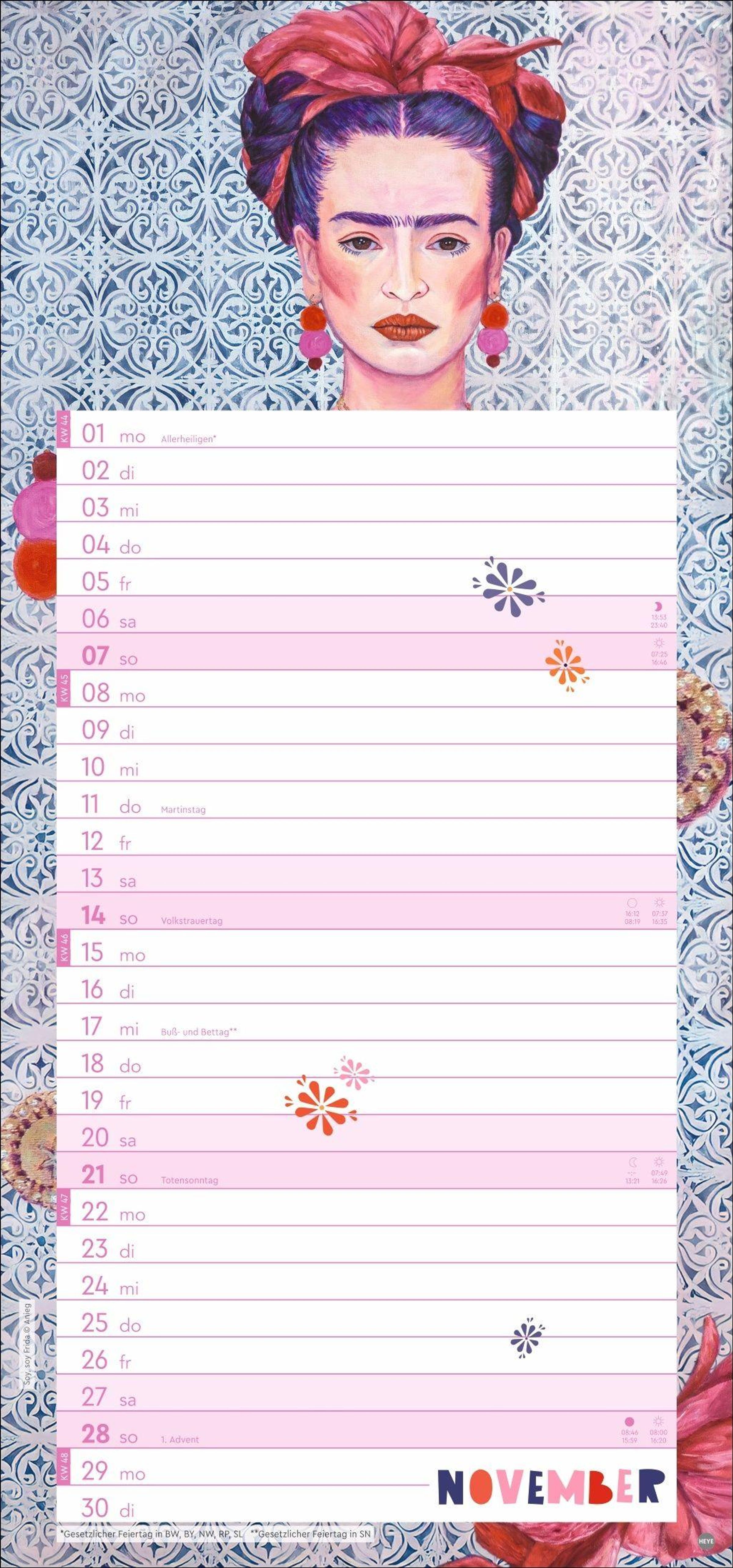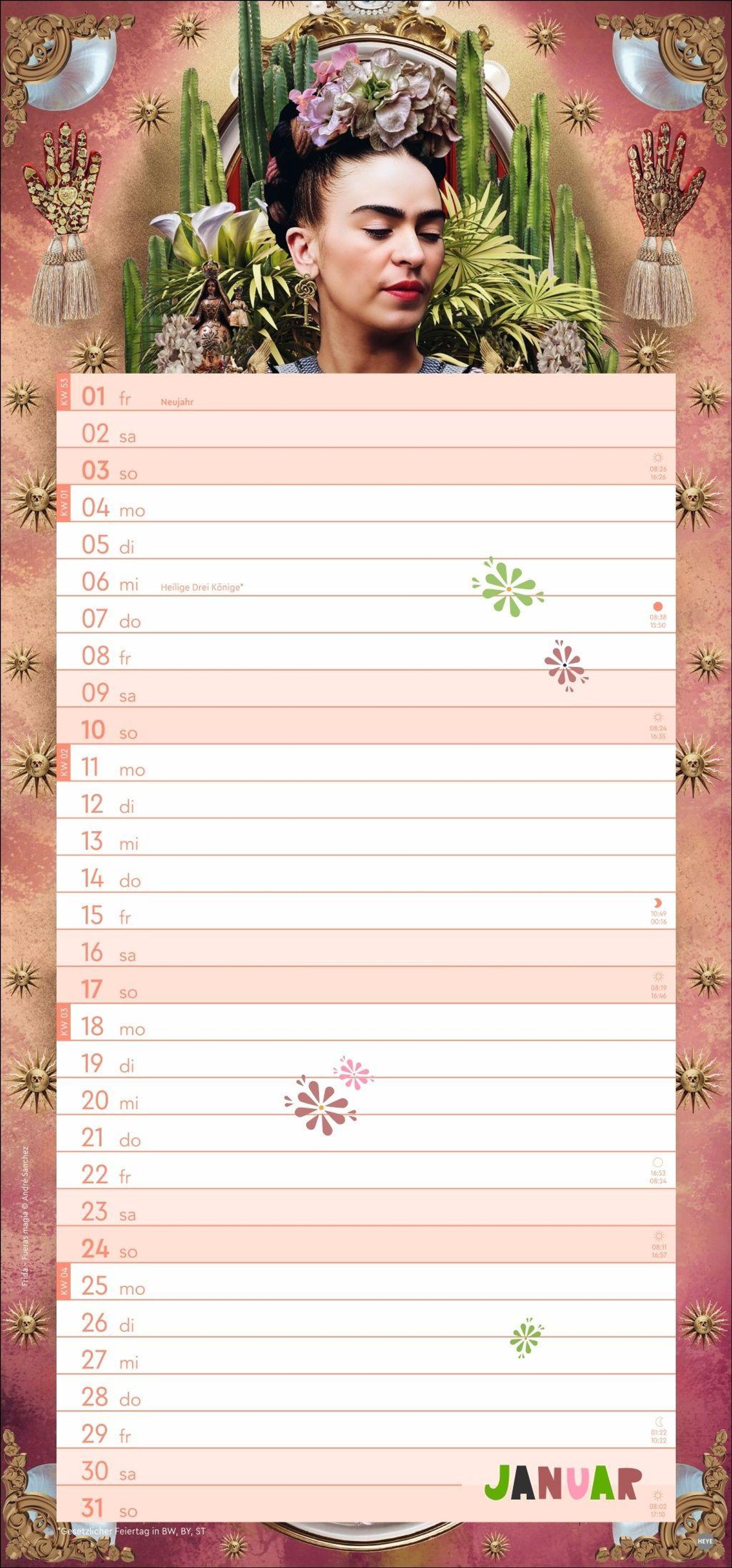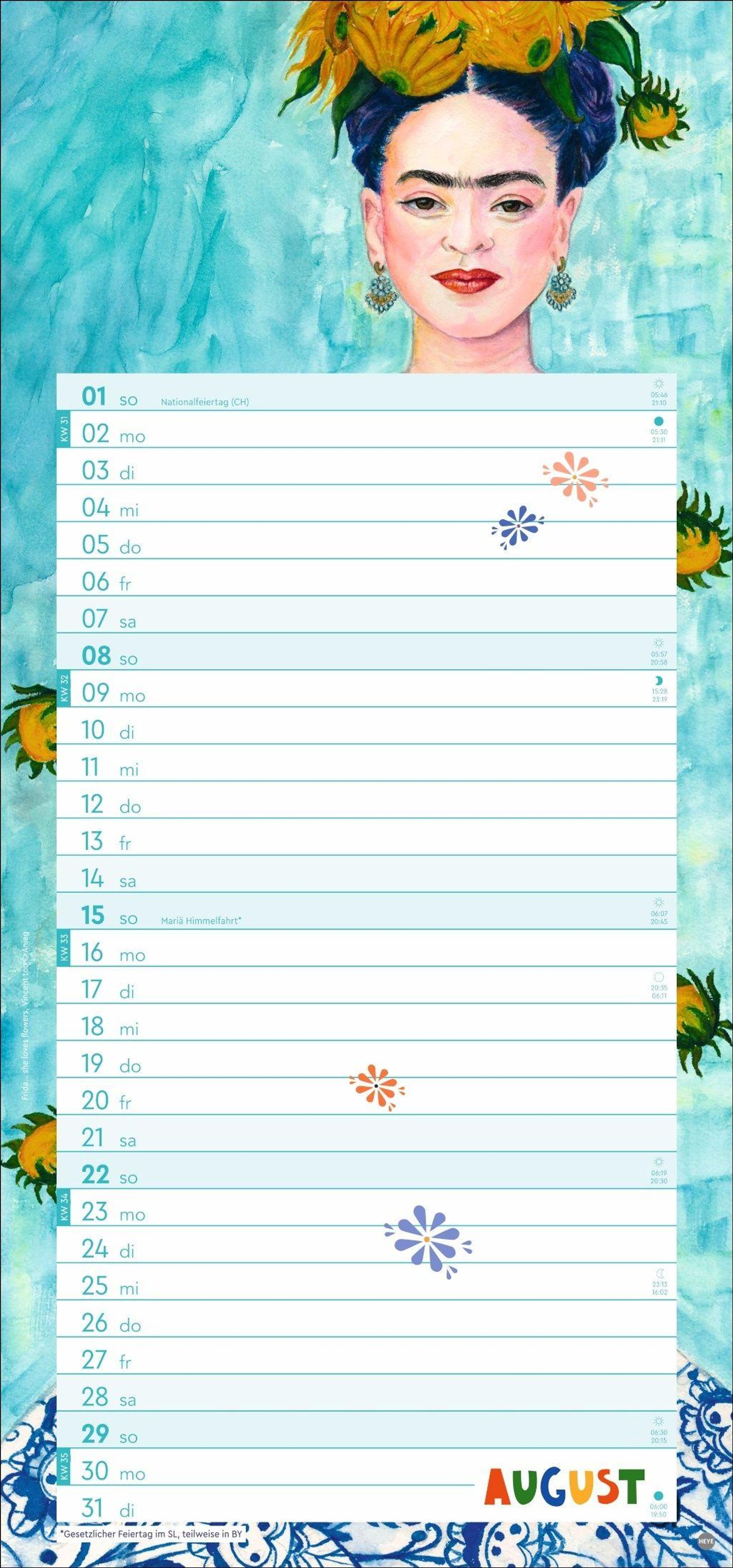 Farbenfrohe Porträts der berühmten Malerin aus Mexiko, die den Alltag bunter machen: Frida-Kunst-Kalender mit viel Platz für Termine und Eintragungen - Reich verzierter Kunstkalender mit floralen Elementen, Blumen, Schmetterlingen und botanischen Motiven, die Fridas Liebe zur Natur widerspiegeln