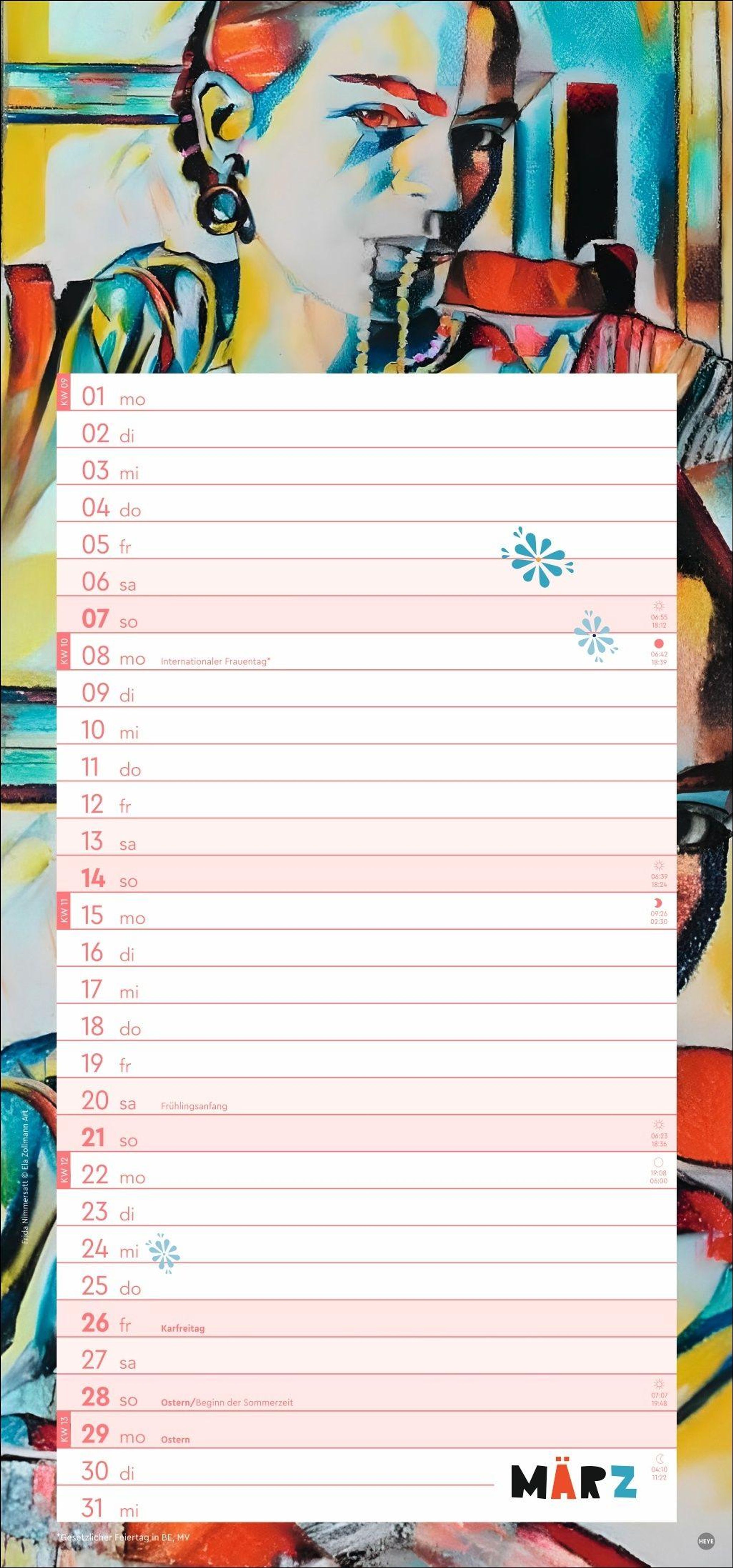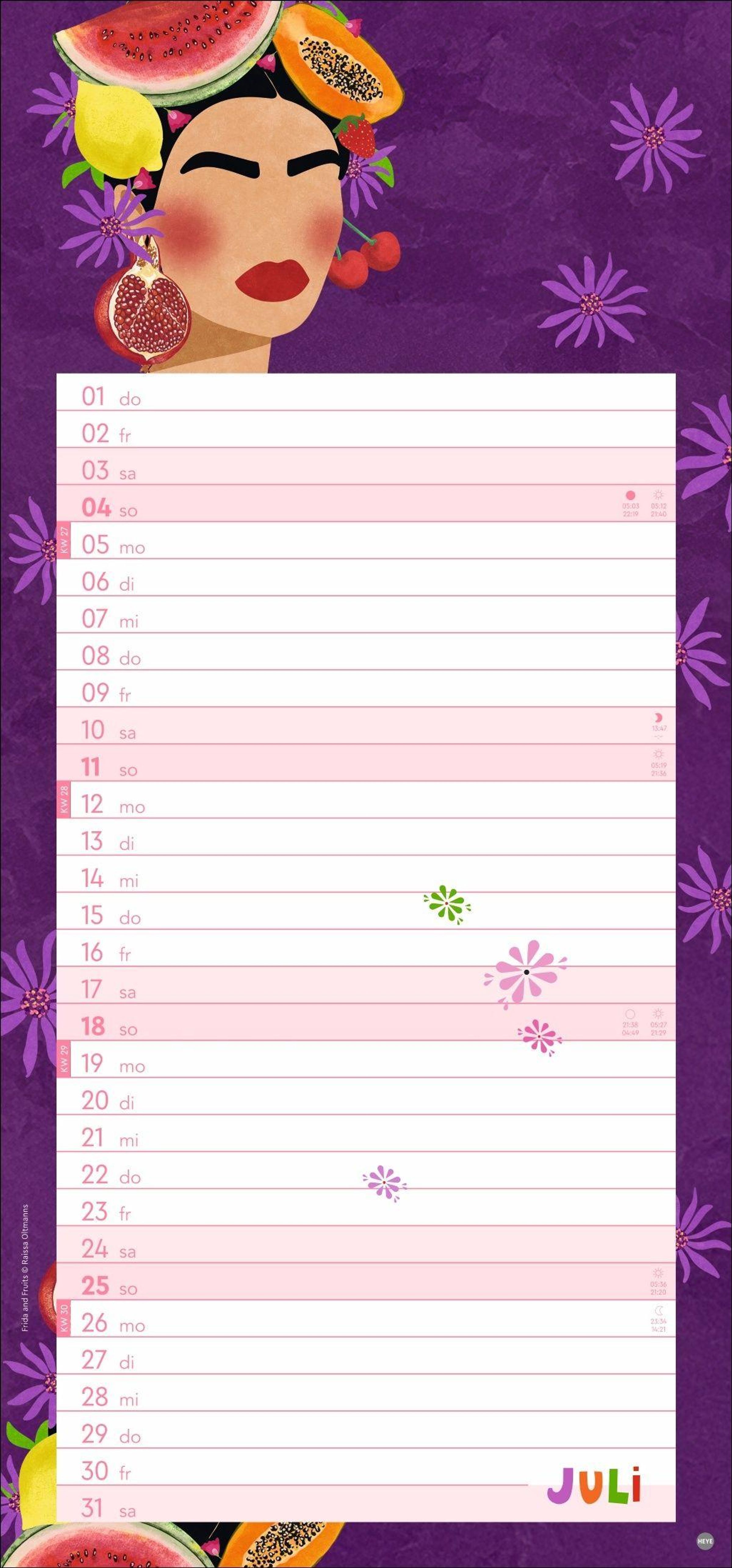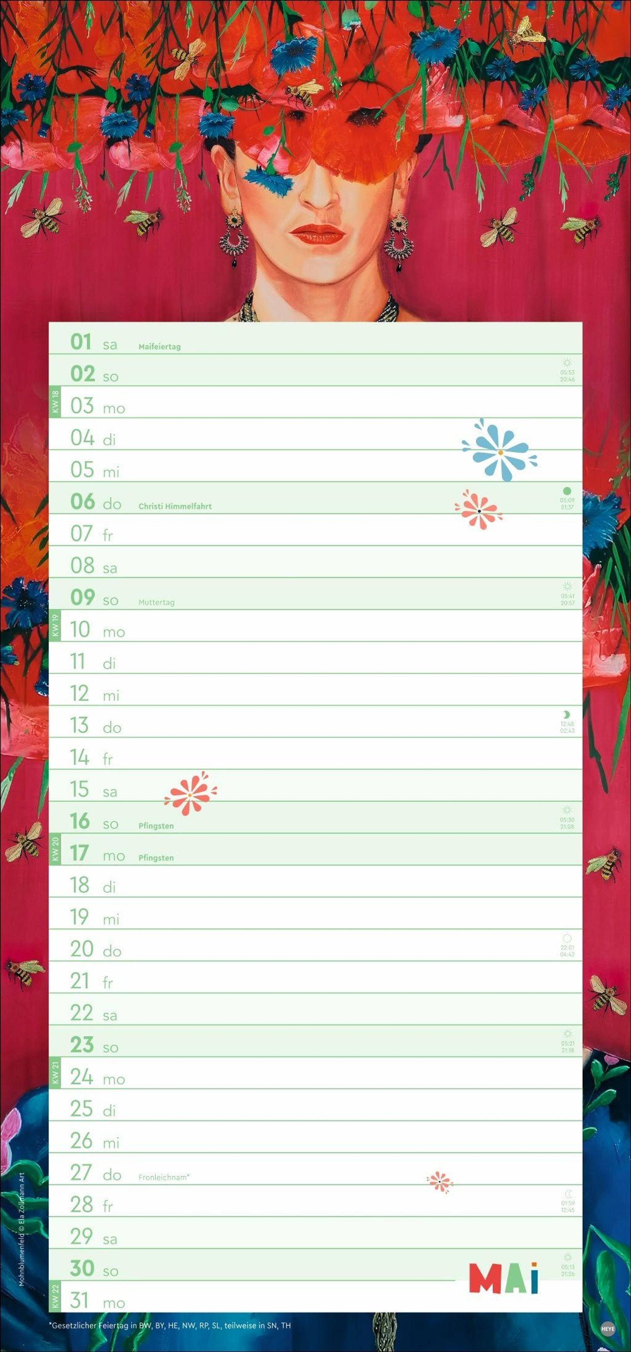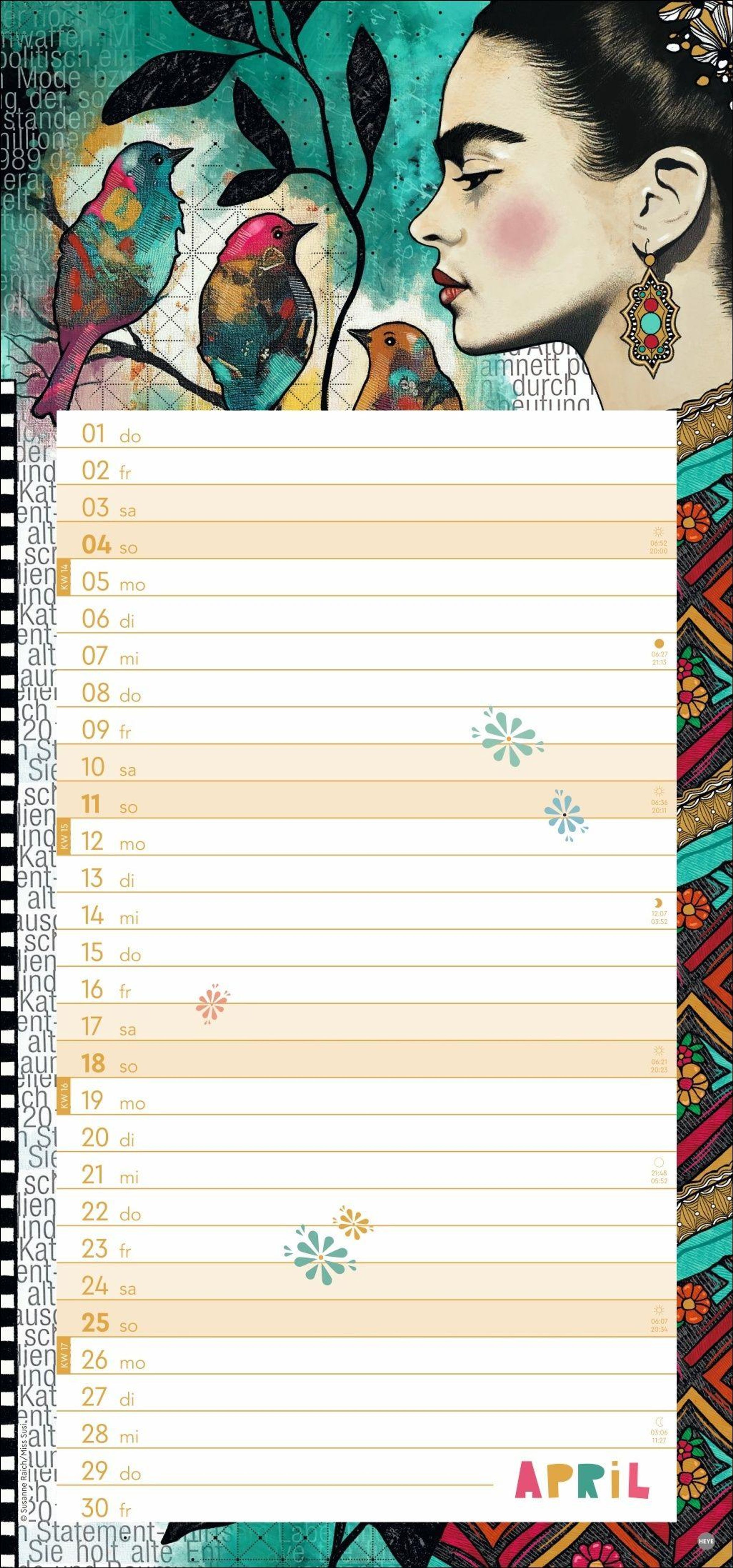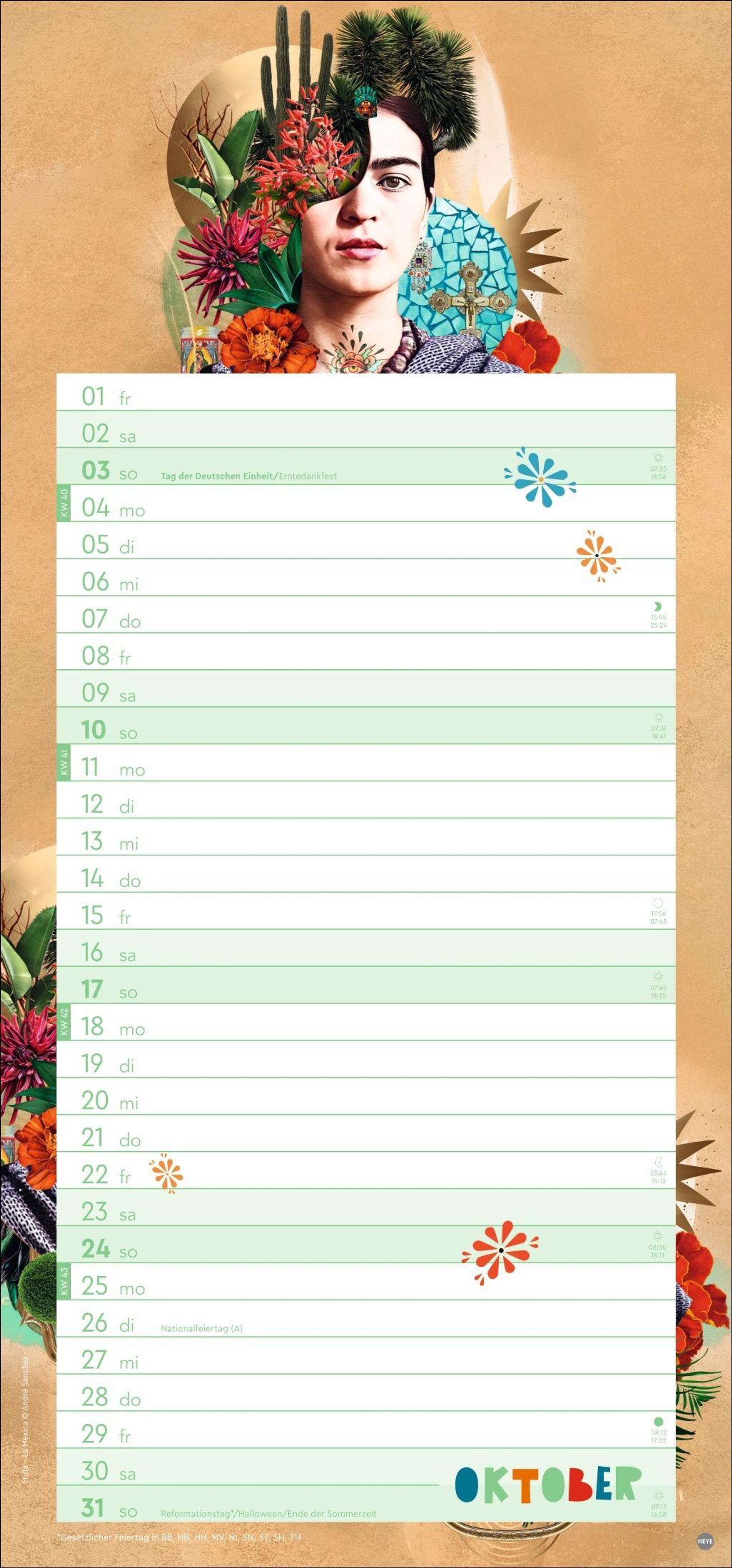 Farbenfrohe Porträts der berühmten Malerin aus Mexiko, die den Alltag bunter machen: Frida-Kunst-Kalender mit viel Platz für Termine und Eintragungen - Reich verzierter Kunstkalender mit floralen Elementen, Blumen, Schmetterlingen und botanischen Motiven, die Fridas Liebe zur Natur widerspiegeln