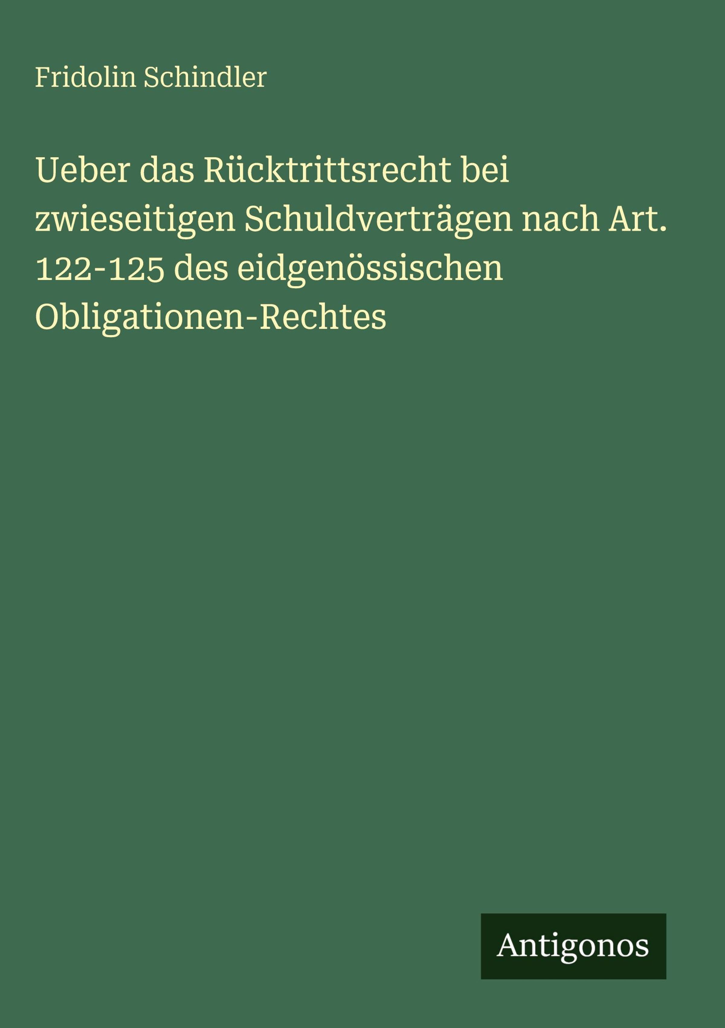 Fridolin Schindler: Ueber das Rücktrittsrecht bei zwieseitigen Schuldverträgen nach Art. 122-125 des..., Gebunden