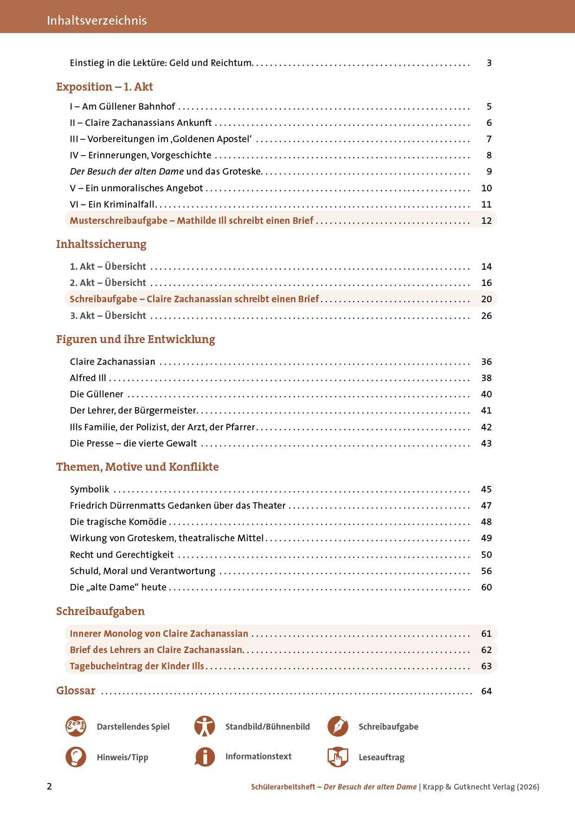 Unser Schülerarbeitsheft begleitet bei der Erschließung der Ganzschrift Der Besuch der alten Dame von Friedrich Dürrenmatt und dessen Themen. Das Unterrichtsmaterial mit abwechslungsreichen Aufgaben, Arbeitsblättern, Hilfestellungen und einer schülernahe Gestaltung mit Illustrationen fördert die Kreativität und das individuelle Lerntempo im Fach Deutsch. Einsetzbar als Arbeitsheft im Unterricht, im Homeschooling und für die private Nutzung.