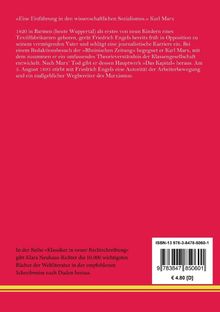 1820 in Barmen (heute Wuppertal) als erstes von neun Kindern eines Textilfabrikanten geboren, gerät Friedrich Engels bereits früh in Opposition zu seinem vermögenden Vater und schlägt eine journalistische Karriere ein. Bei einem Redaktionsbesuch der >>Rheinischen Zeitung<< begegnet er Karl Marx, mit dem zusammen er ein umfassendes Theorieverständnis der Klassengesellschaft entwickelt. Nach Marx' Tod gibt er dessen Hauptwerk >>Das Kapital<< heraus. Am 5. August 1895 stirbt mit Friedrich Engels eine Autorität der Arbeiterbewegung und ein maßgeblicher Wegbereiter des Marxismus.