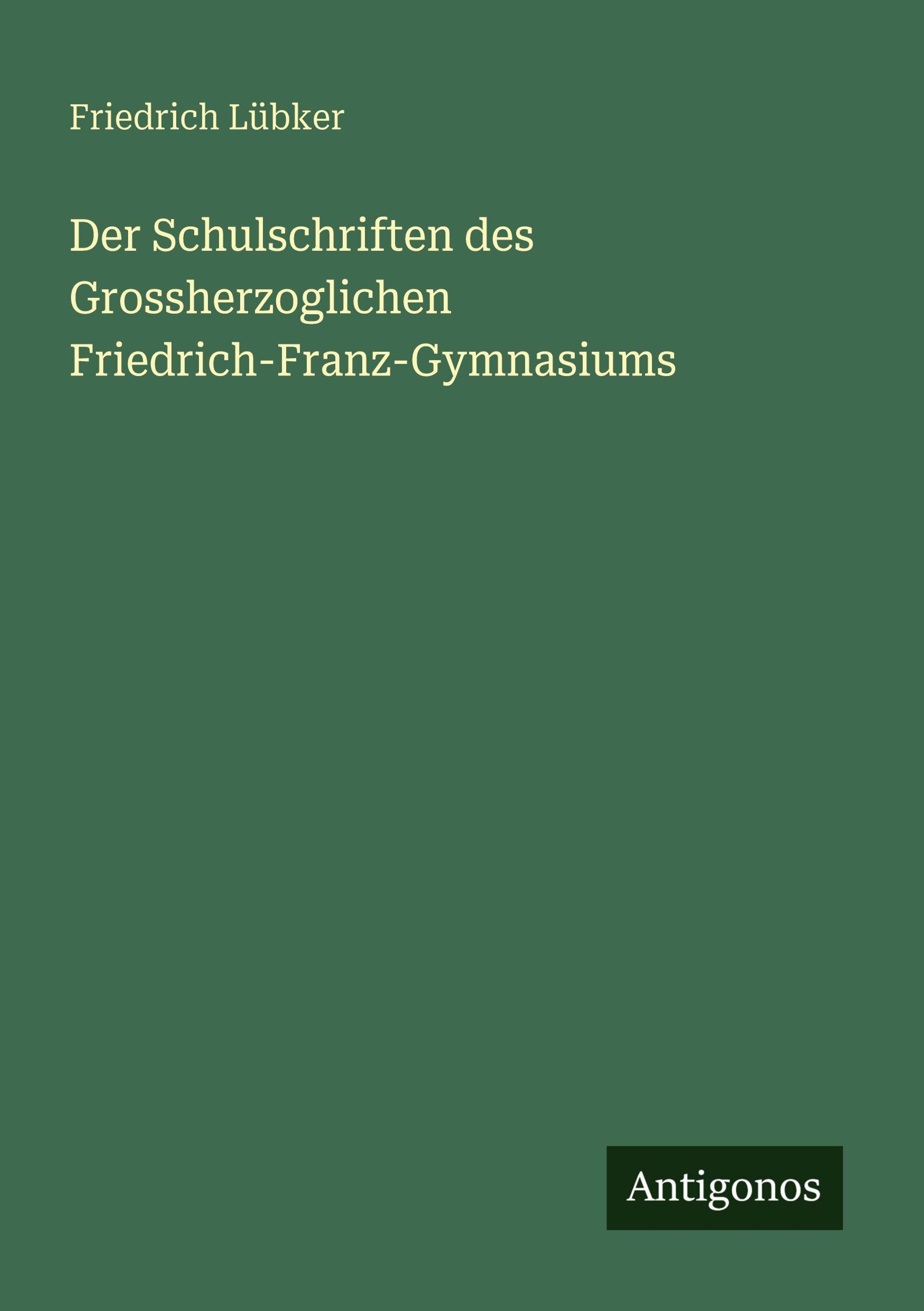 Friedrich Lübker: Der Schulschriften des Grossherzoglichen Friedrich-Franz-Gymnasiums, Kartoniert / Broschiert