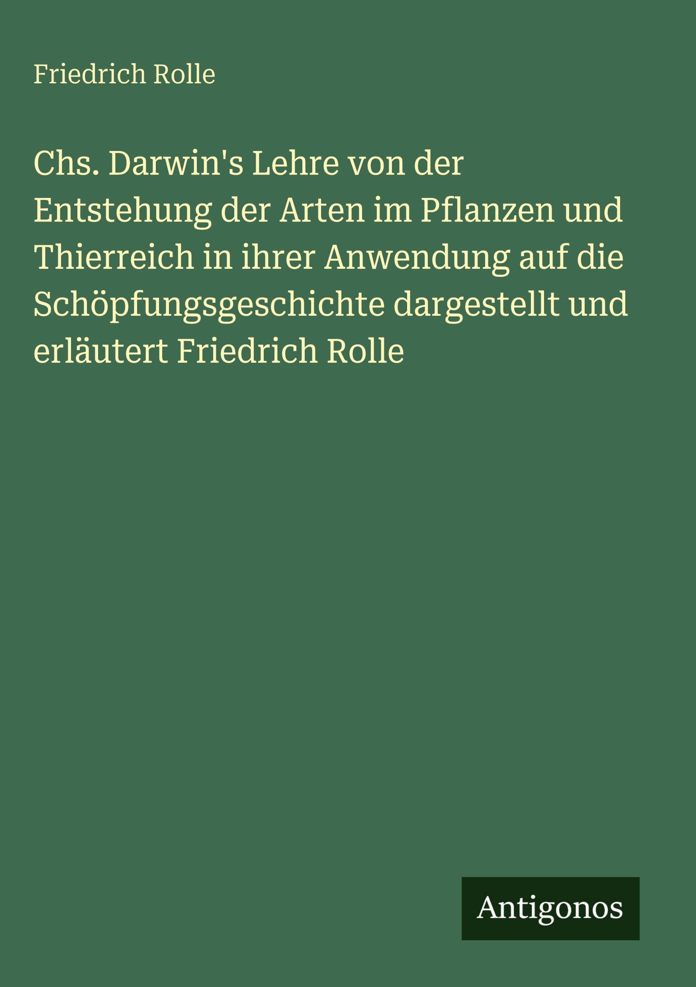 Chs. Darwin's Lehre von der Entstehung der Arten im Pflanzen und Thierreich in ihrer Anwendung auf die Schöpfungsgeschichte dargestellt und erläutert Friedrich Rolle