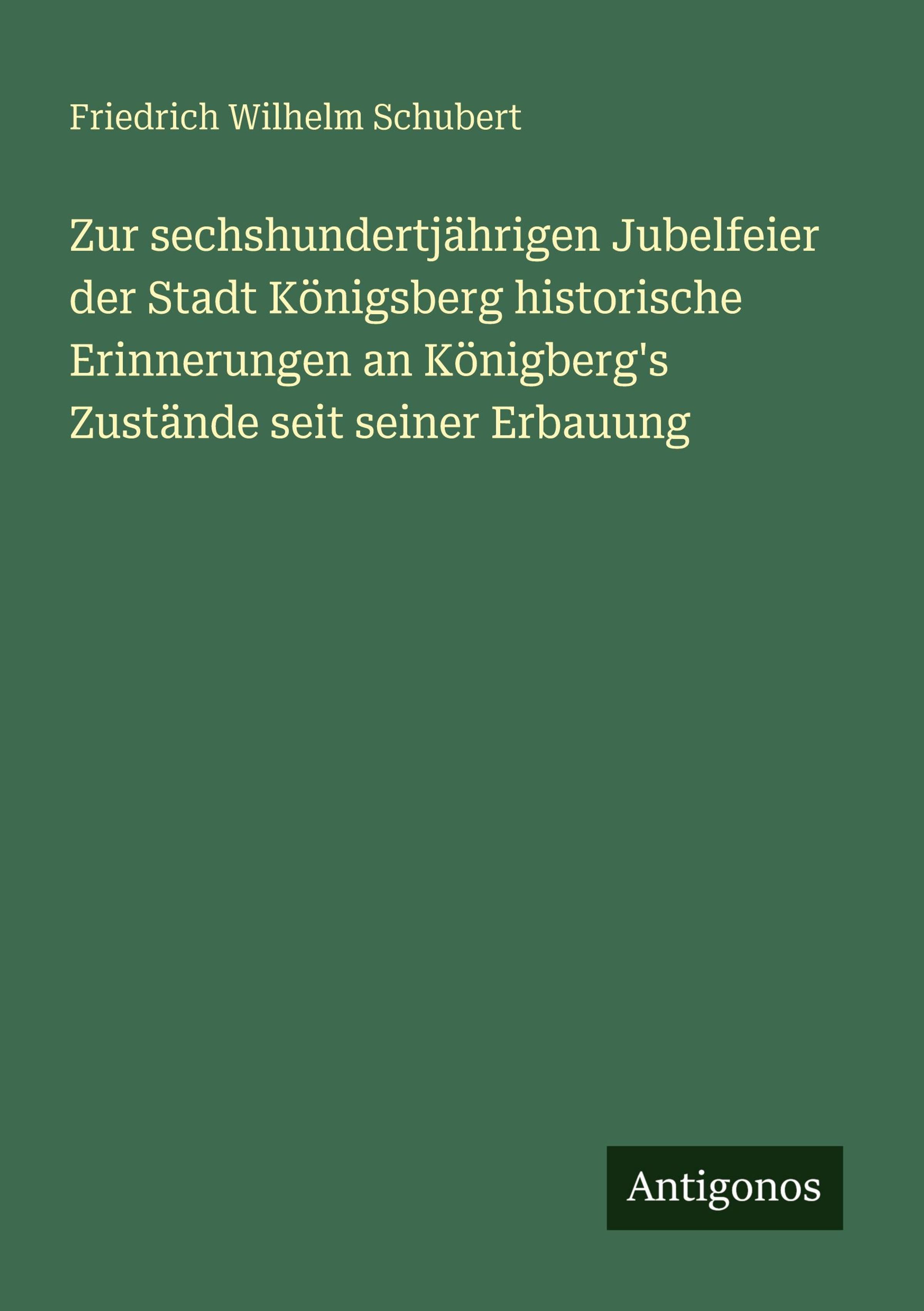 Friedrich Wilhelm Schubert: Zur sechshundertjährigen Jubelfeier der Stadt Königsberg historische Erinnerungen an..., Kartoniert / Broschiert
