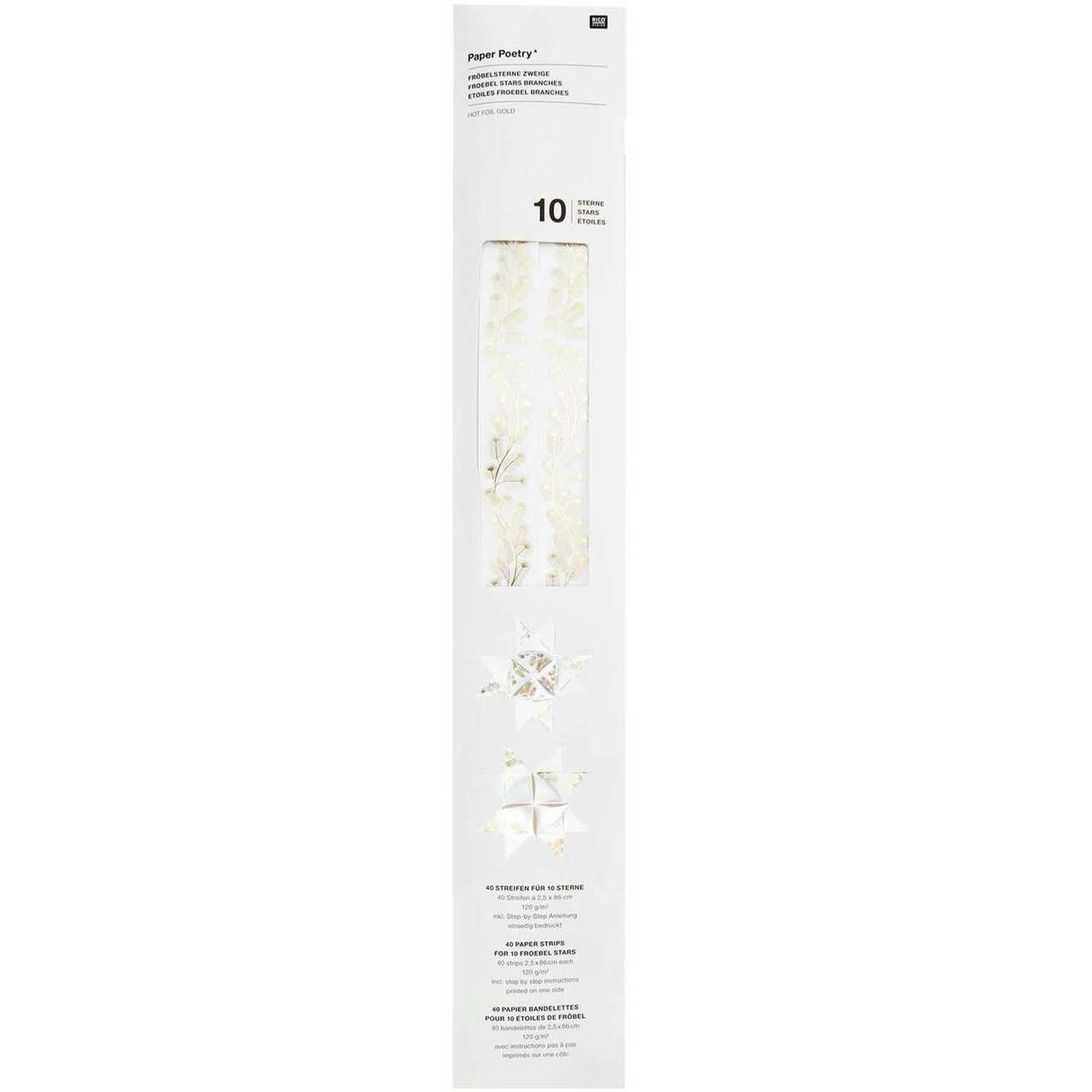 Die Rico Design Fröbelstreifen mit goldenen Zweigen sind perfekt für eine festliche Weihnachtsdeko.? Mit der anschaulichen Anleitung gelingt das Basteln der dreidimensionalen Sterne garantiert.