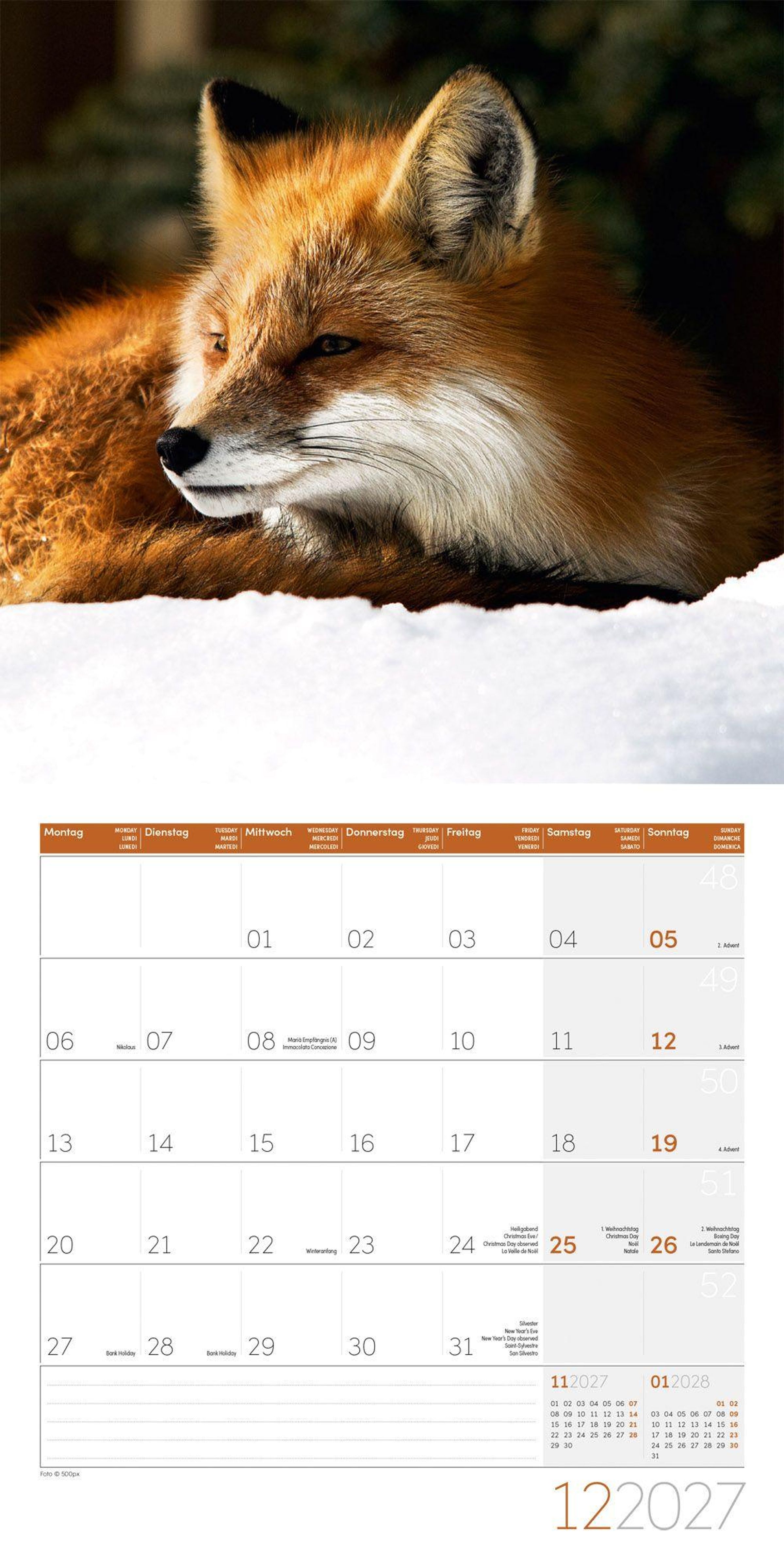 Füchse Kalender 2027 - 30x30 - Art12 (Kalender)